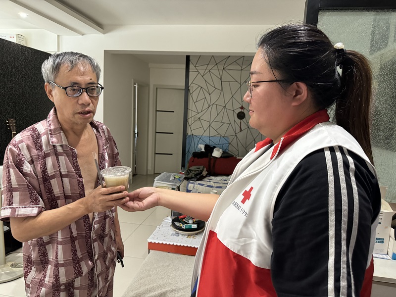 8月16日上午,凤宾路社区红十字志愿者一大早就开始了准备工作。他们精心挑选优质绿豆,淘洗熬煮一气呵成,没一会一锅锅香气扑鼻、清凉解暑的绿豆汤就出锅了。红十字志愿者们在社区广场设置了发放点,前来领取绿豆汤的居民络绎不绝。为了让行动不便的居民们也能喝上绿豆汤,志愿者们还组成了小分队,为社区内行动不便的老人和残疾人上门送绿豆汤,并贴心地提醒大家注意防暑降温,合理安排作息时间。当绿豆汤送到他们手中时,他们眼中满是感动和喜悦。“这绿豆汤真不错,喝下去感觉整个人都凉快了许多,咱们社区红十字会的关怀太贴心啦!”一位居民喝完绿豆汤后,满脸笑容地说道。