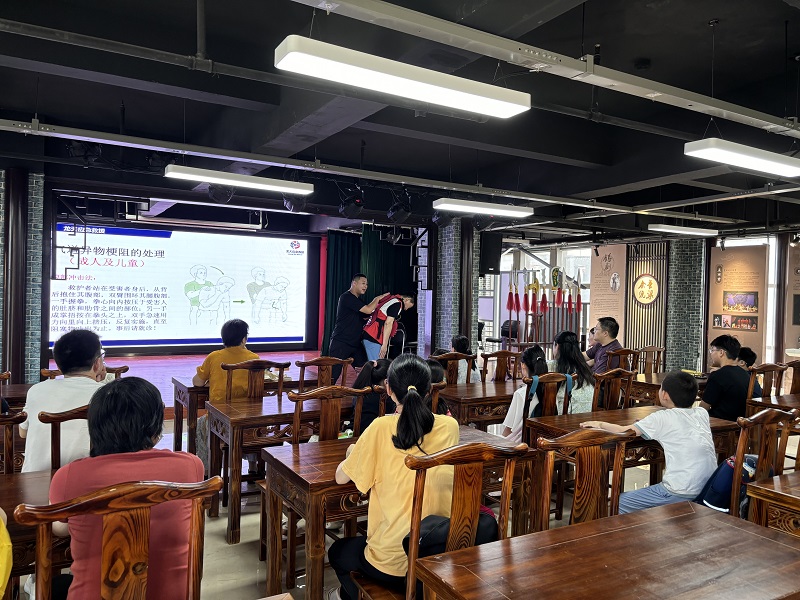 8月15日上午,北大街街道老戏馆弄社区红十字会邀请无锡龙天应急救援队教官许华以理论讲授、现场演示、实践操作等方式进行授课。教官向小朋友们依次讲解了防溺水知识、居家安全、预防中暑、气道异物梗阻等急救知识,并现场演示了腹部冲击急救法、心肺复苏术等救护技能。小朋友们积极参与各项急救技能体验并与教官开展互动,通过回答问题、现场教学等方式,真正把应急救护知识真正学到心里,落实在行动上。讲解了“一圈、一绳、一杆”防溺水有关知识,告诉大家遇到危险情况一定要学会智慧救援,在开展救护前要及时拨打急救电话,切不可盲目施救,同时结合发生在身边的事例告诉大家在进行心肺复苏要抓紧黄金急救4分钟。