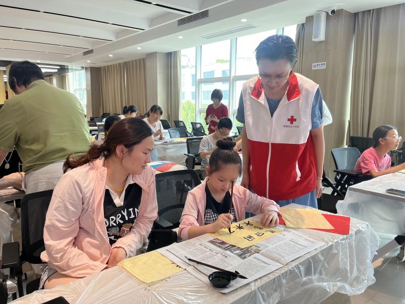 这不是一场简单的书法练习,而是一次心灵的触碰。在老师和红十字志愿者的引导下,家长与孩子们心连心,共同探索汉字的奥秘。他们的脸上洋溢着专注与喜悦,每一幅作品都是亲子间爱的见证,是传统文化与现代家庭情感的完美融合。