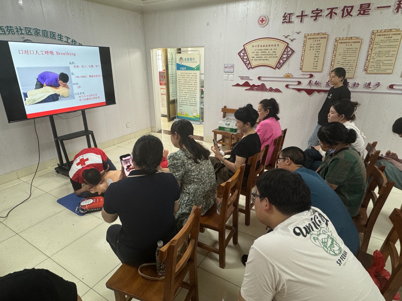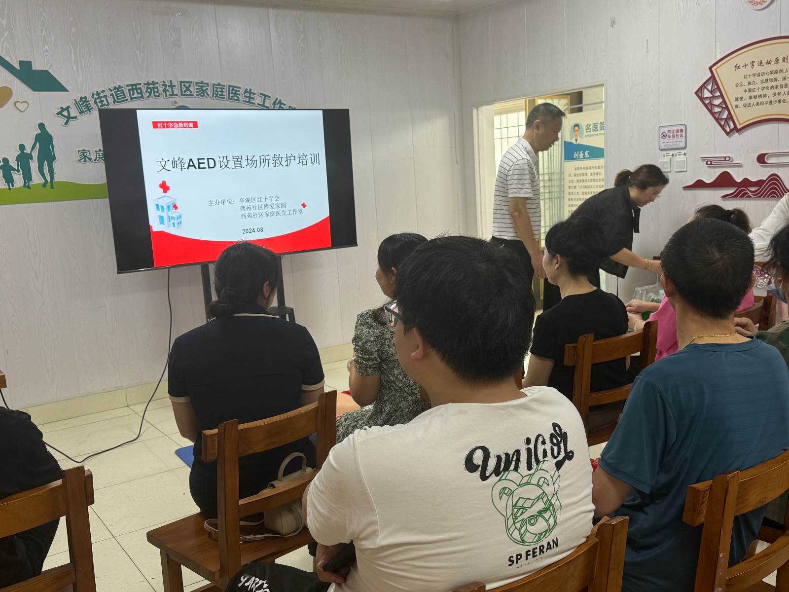 为做好自动体外除颤仪(AED)新增点位相关人员应急救护培训工作,8月22日,盐城市亭湖区红十字会组织应急救护培训师资在文峰街道西苑社区红十字“博爱家园”开展应急救护技能培训暨自动体外除颤仪(AED)使用培训班,来自亭湖区文峰街道辖区的11个社区卫生服务站、村卫生室工作人员以及“博爱家园”工作人员、志愿者近50人参加培训。此次培训,不仅提高了参训人员对应急救护知识、技能的认识,也增强了其在未来工作中推广、应用AED及心肺复苏技术的信心和能力,让新增AED真正纳入全区“一张网”。