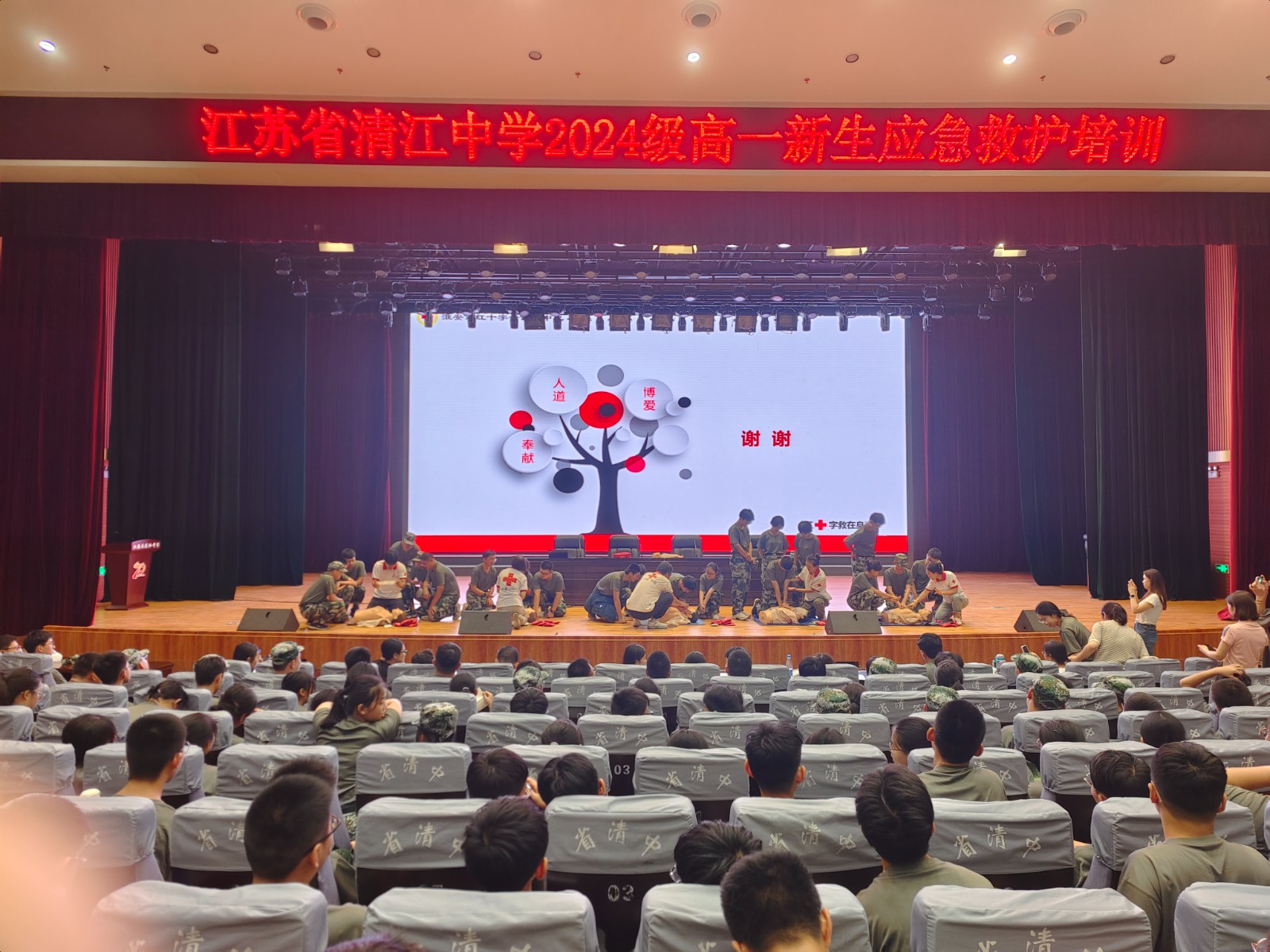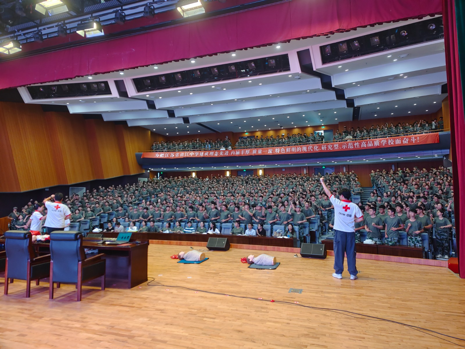 8月15日,清江浦区红十字会走进江苏省清江中学,为该校1100名高一新生带来了一场意义非凡的应急救护知识培训。