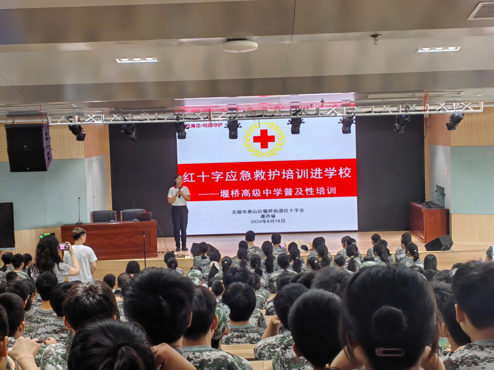 8月18日,惠山区堰桥街道红十字会在堰桥高级中学报告厅开展“急救在先,为爱守护”普及性救护培训及红十字入会宣誓仪式,旨在为新入学的2024级高一新生普及急救知识,增强应急避险能力,培养社会责任感与奉献精神。
