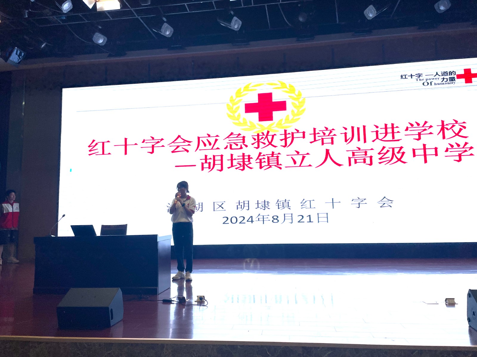 为科学普及师生应急救护知识,增强应对突发事件、意外伤害的意识和能力,营造平安校园氛围,8月21日,胡埭镇红十字会应急救护培训走进无锡市立人高级中学,为600余名高一新生普及急救知识。