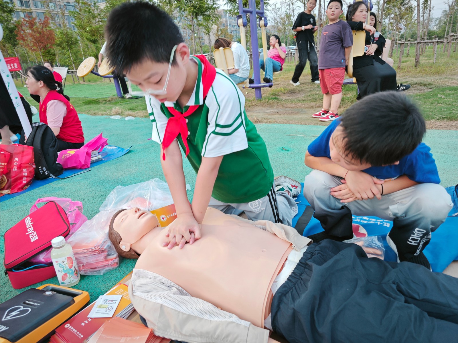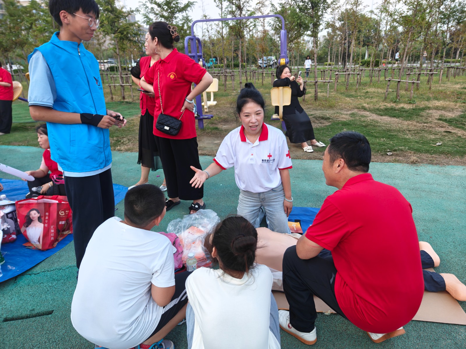 县红十字会应急救护培训师资利用模拟人向现场群众系统地演示了心肺复苏和AED的操作技能,并指导参与群众练习胸外按压。与此同时,红十字志愿者热情地向群众发放红十字运动基本常识、急救知识读本等宣传资料,进一步扩大了急救知识普及面。