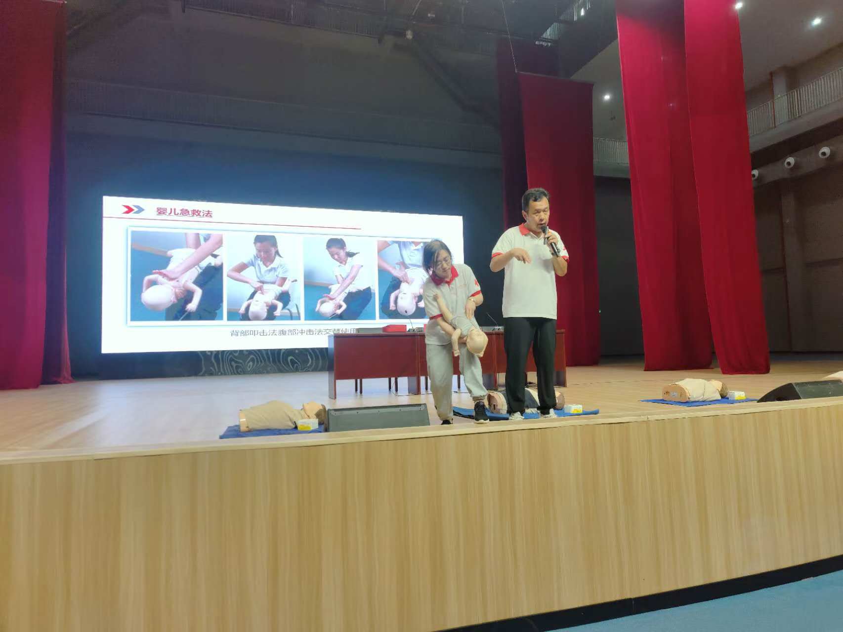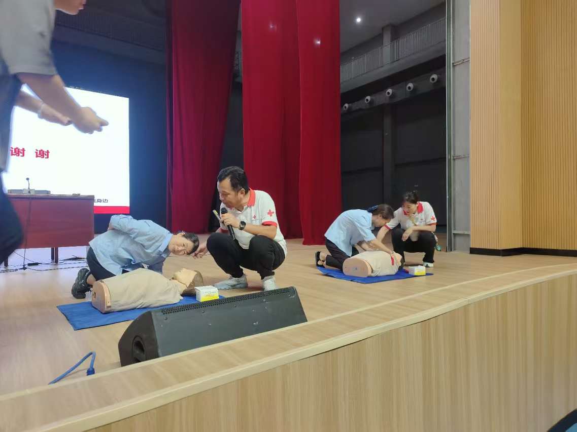 此次培训由清江浦区红十字会救护培训讲师范金虎为大家讲授,范老师用通俗易懂、深入浅出的方式讲授了地震、火灾、交通事故、溺水的自救互救,并向学员们演示了心肺复苏术、人工呼吸法、骨折固定法、创伤止血及包扎法等紧急救护技术。