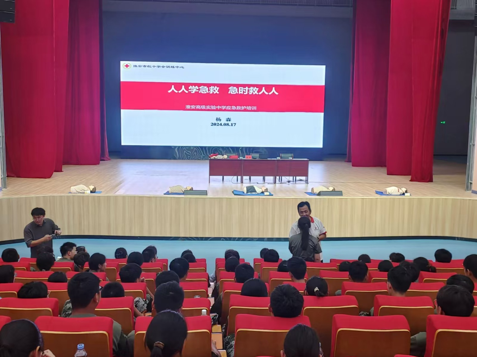 为了普及青少年应急救护知识,提高中学生在各种突发事件中应急处理能力和掌握日常生活遇到意外伤害正确自救互救的技能,近日,清江浦区红十字会工作人员来到淮安高级实验中学,为500名高一新生开展应急救护培训。