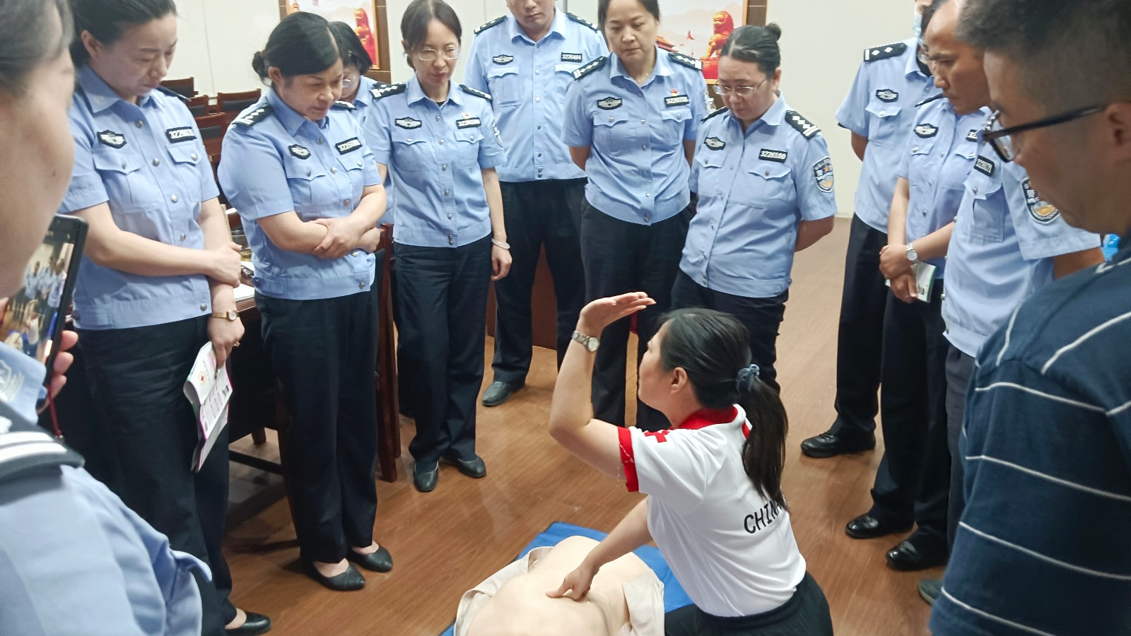 培训包含理论知识授课、现场示范讲解和实操练习考核等内容。培训老师们针对干警在工作中可能遇到的突发情况进行详细讲解,重点对心肺复苏和体外自动除颤仪(AED)的操作方法、海姆立克急救法、创伤救护等内容进行授课。