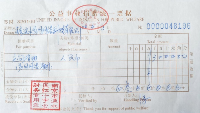 溧水114网每年都会组织或参与众多爱心公益活动。溧水114网于今年四月,向溧水红十字会捐赠了3000元。捐赠时,溧水114网即和溧水红十字会约定,此捐款为定向捐助给学生的微心愿。