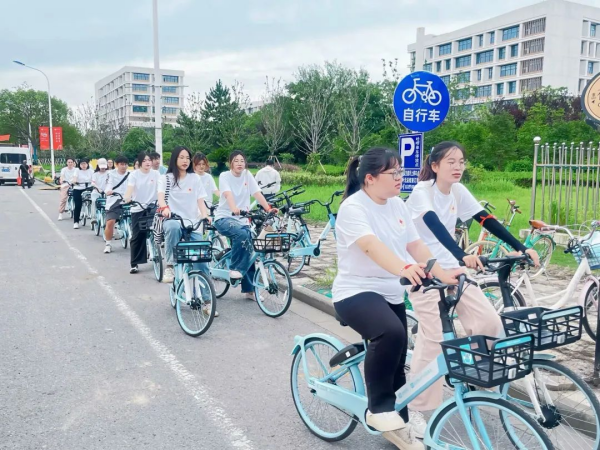 项目团队的志愿者们,在共享单车上系上寓意希望的红丝带,不仅彰显了他们对志愿活动的无限热情,更生动诠释了“人道、博爱、奉献”的红十字精神。从南通大学啬园校区出发,一路骑行至滨江公园,红丝带随风飘扬,成为城市中一道亮丽的风景线。市民们纷纷驻足观看,志愿者们借此机会,热情地向过往路人介绍新业态新就业群体的现状,传递正能量。