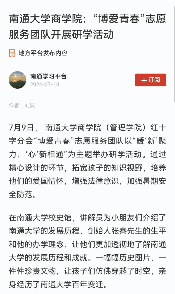 该志愿服务团队积极走访和联系南通市新业态新就业群体党群服务中心、南通市滴滴出行司机党群服务中心、南通市崇川区顺丰速运(城山家园店)等地,通过深度对话与紧密协作,为快递员、网约车司机等新业态从业者及其子女量身定制帮扶方案,构建起一张全方位、多层次的社会支持网络。
