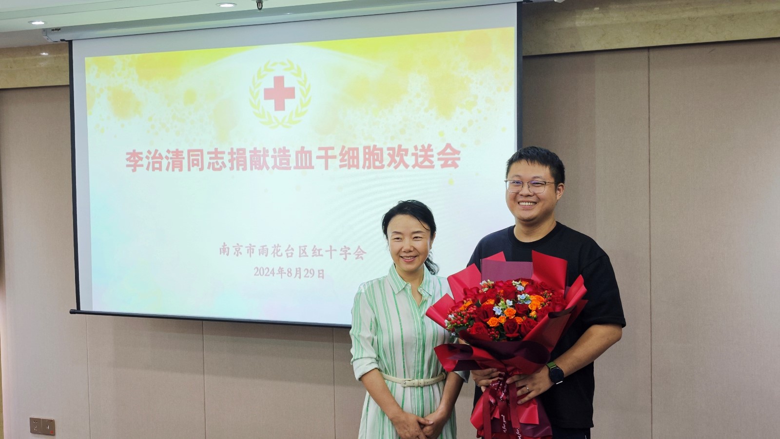 8月29日上午,雨花台区红十字会在区政府大楼举行了小李同志捐献造血干细胞欢送会。李治清同志2007年大学毕业之际就加入了中国造血干细胞资料库,他志愿捐献造血干细胞的愿望终于在17后如愿。他将成为我区第 16 位、南京市第 200 位捐献造血干细胞志愿者。