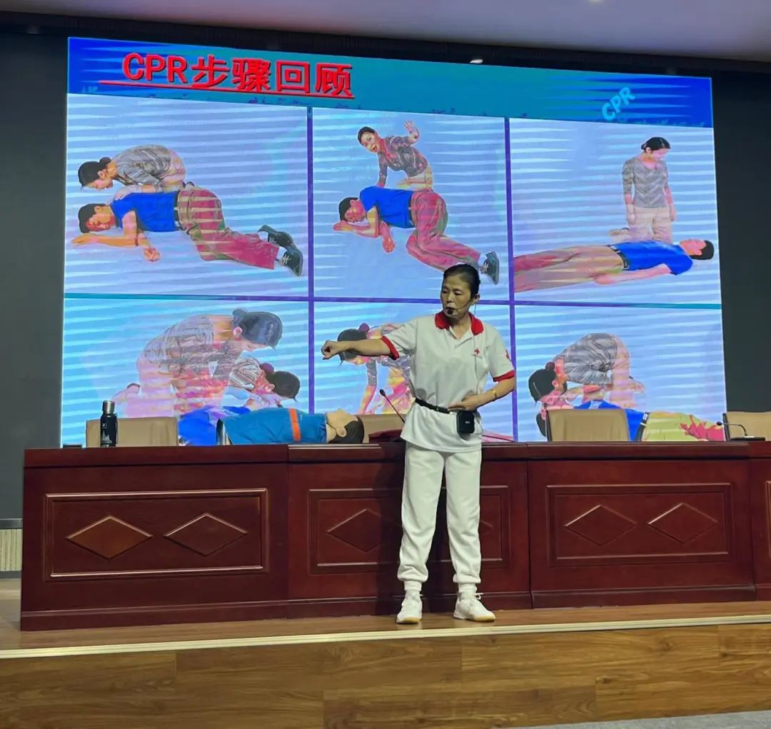 区红十字会应急救护培训老师通过理论讲解、生活实例导入、模拟示范等形式为大家介绍心肺复苏术、海姆立克急救法、AED的使用、溺水急救及农忙时节常见创伤救护等。培训老师理论联系实际,在讲解示范后,逐一指导大家反复实操练习,直到准确掌握各项操作要求。