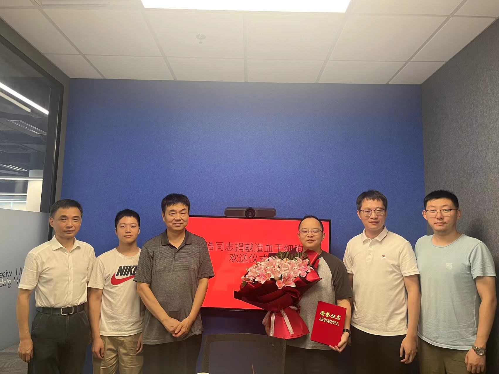 8月30日下午,一场朴素的欢送会在建邺区华新城慧咨环球公司举行。南京市建邺区红十字会的工作人员到场为即将捐赠造血干细胞的37岁公司员工李浩送上鲜花,感谢他的大爱精神。