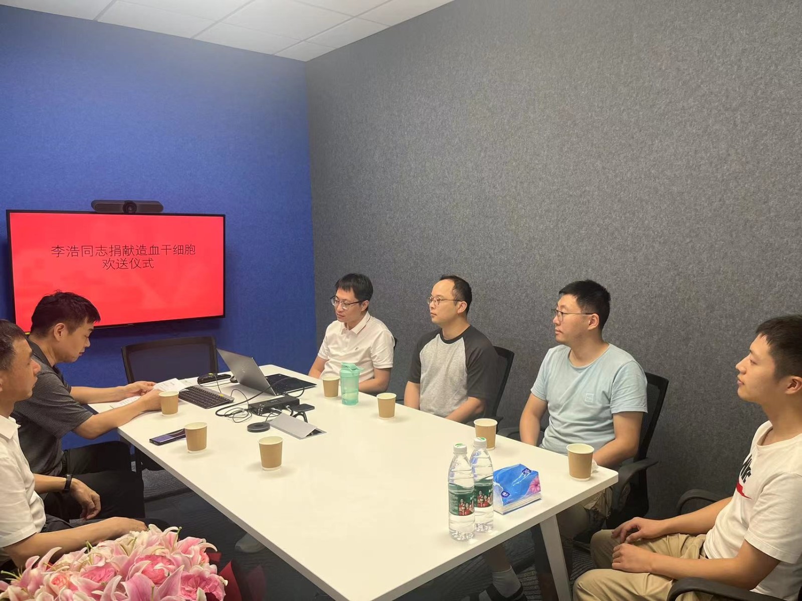 公司负责人刘坤表示,将为李浩的捐献尽力做好后勤准备,待捐赠完成后,会请李浩在公司内部进行分享,号召公司全体员工学习他的博爱、人道、奉献精神。建邺区红十字会常务副会长滕宏明代表区红会向李浩表示敬意,感谢李浩家庭和其所在公司对造血干细胞捐献工作的支持。赠人玫瑰,手有余香,他也呼吁更多人能向李浩生学习,加入中华骨髓库,挽救别人生命的同时,实现自己更高的人生价值。