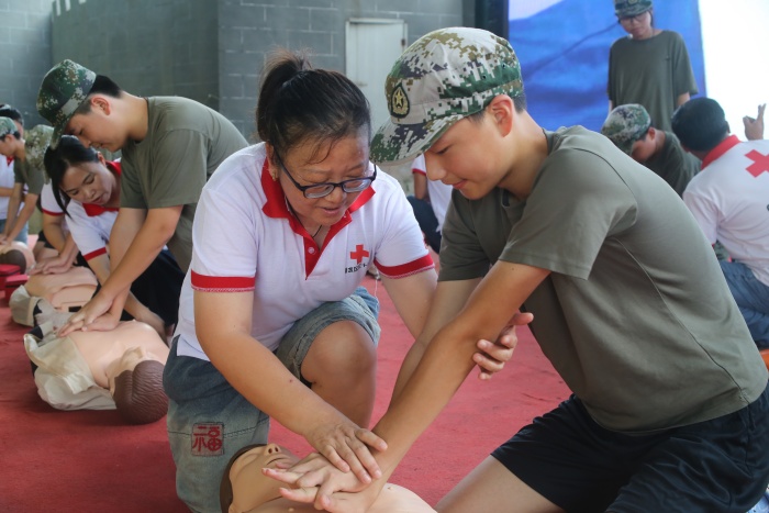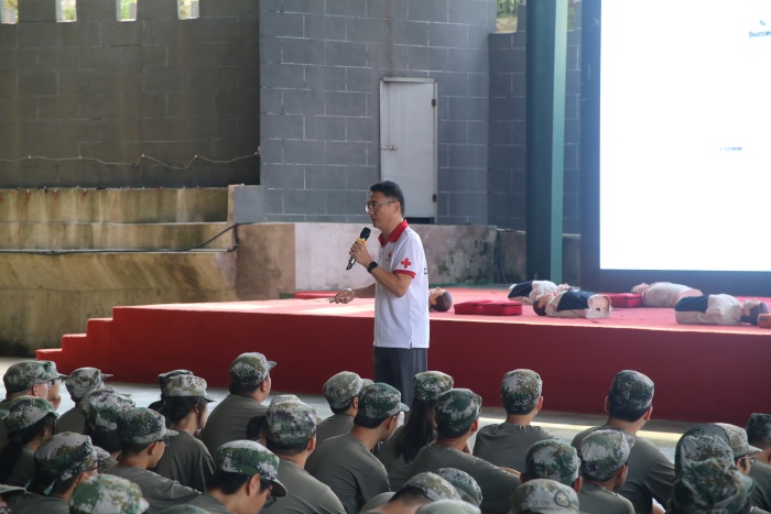 红十字应急救护培训走进军训课堂,为高一新生们带来了一堂生动而实用的生命“必修课”,在保障他们生命健康安全的同时,也在他们心中种下一颗“人道、博爱、奉献”的红十字种子。