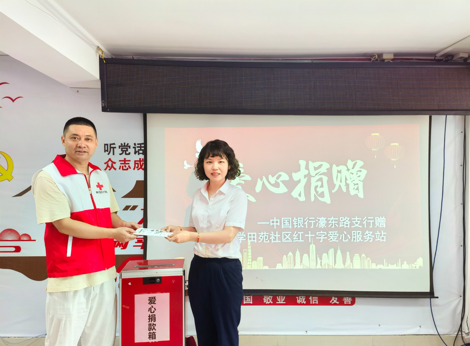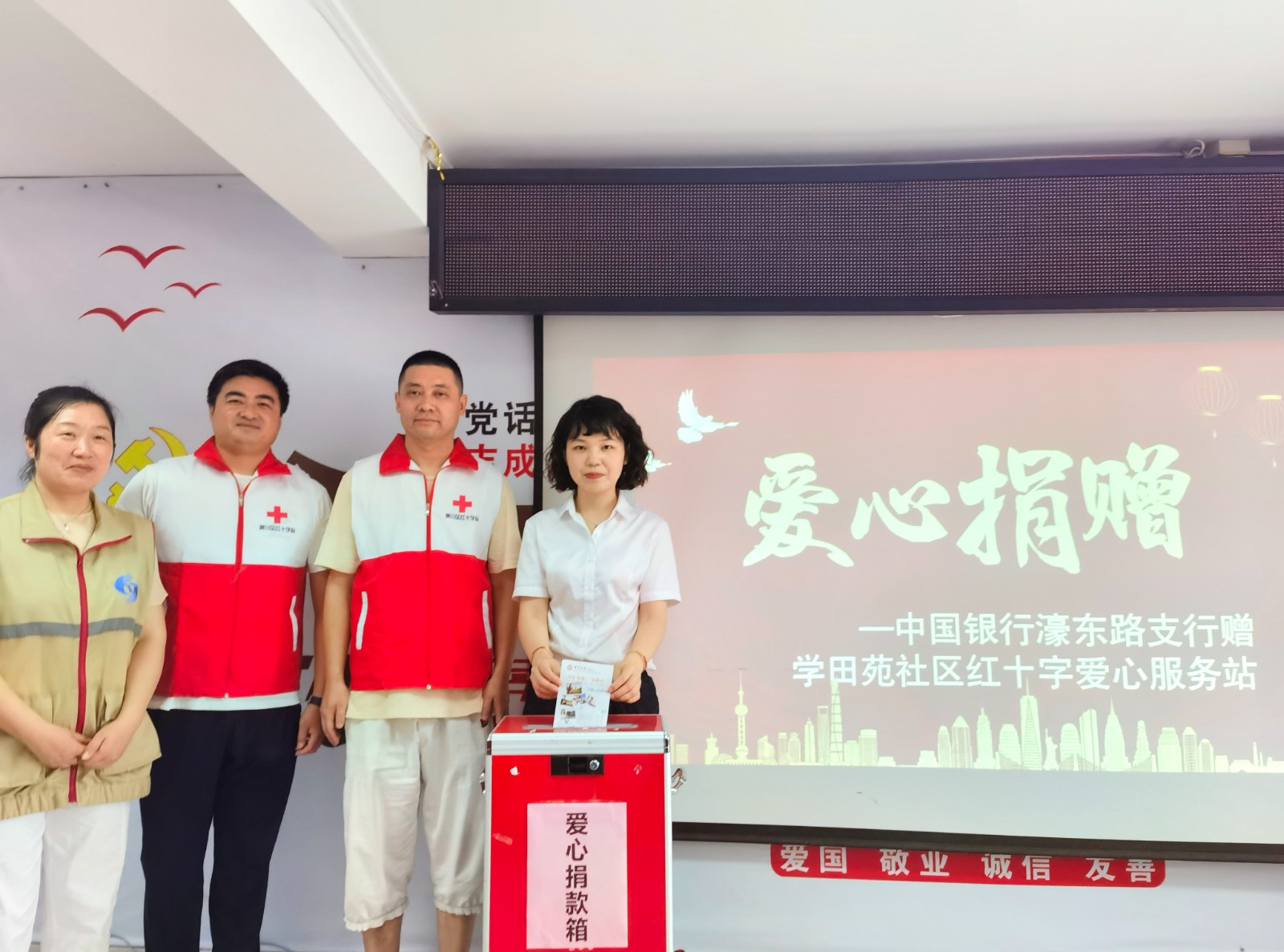 辖区单位中国银行濠东路支行来到学田苑社区为九九公益日进行爱心募捐,学田苑社区党委副书记孙建军表示会让每一份爱心善意都得到落实。中国银行濠东路支行许行长表示,扶危济困、乐善好施是中华民族的优良传统,该行在做好本职工作的同时,也积极响应号召,在困难群体帮扶、公益活动等方面做些力所能及的事情,支持红十字事业发展,让爱心散发出最大的能量。