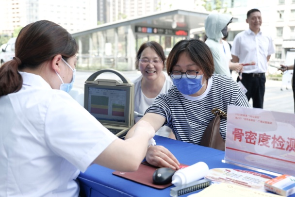 救护培训老师耐心地为市民传授心肺复苏、海姆立克法急救、AED机的使用等技能;造血干细胞捐献者和无偿献血志愿者代表们以知识问答的形式,向市民科普造血干细胞捐献和无偿献血知识。来自中山骨科医院的10名医护人员开展了现场义诊,免费为市民提供血压测量、血糖检测、骨密度检测、关节健康检查、病情咨询及现场康复理疗等服务。
