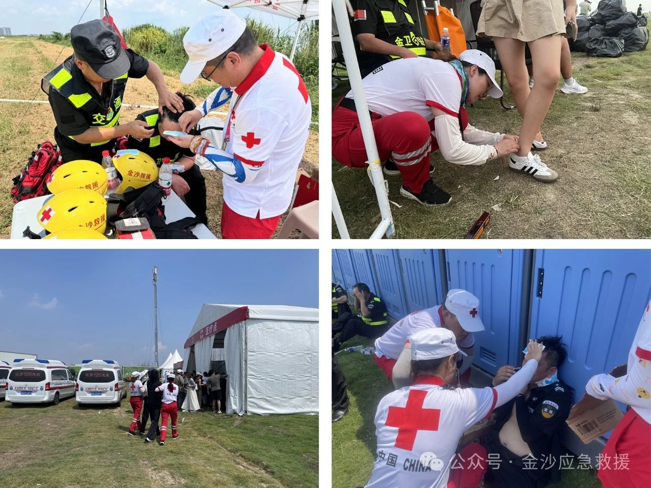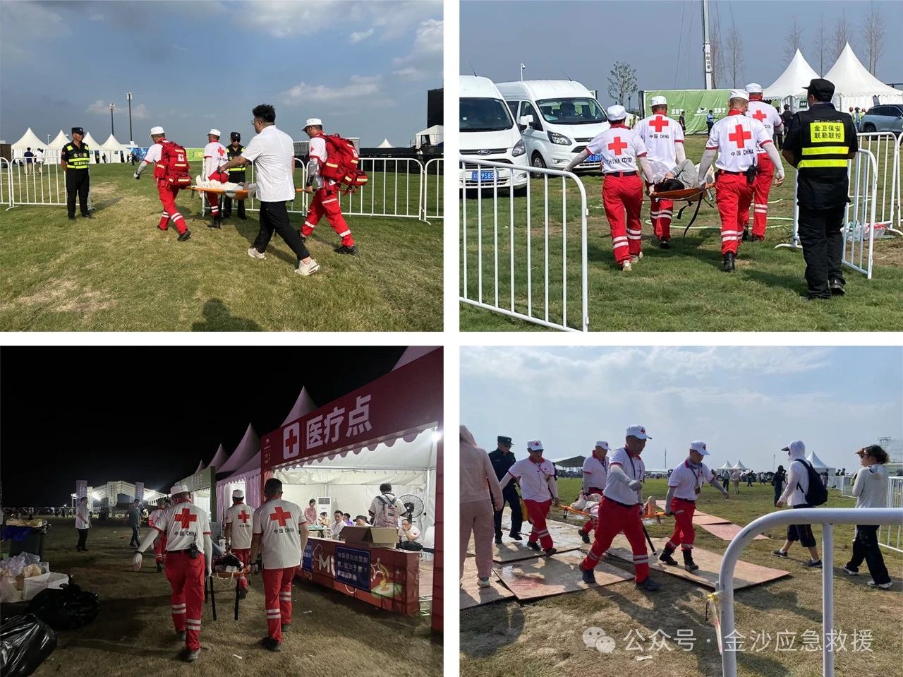 音乐节准备前期,细化完善保障预案和点位分工,应对处置乐迷中暑、出血、扭伤、低血糖等突发情况。红十字金沙救援队配备了四顶急救帐篷、三台AED除颤仪、十个综合急救包、四个担架、二十台对讲机,两艘水域救援冲锋舟、两台发动机、十件水域救生衣、十个水域救援头盔、十个抛绳包。队员们顶着高温酷暑以最拼的精神状态和身体素质积极热情的完成每一项工作。