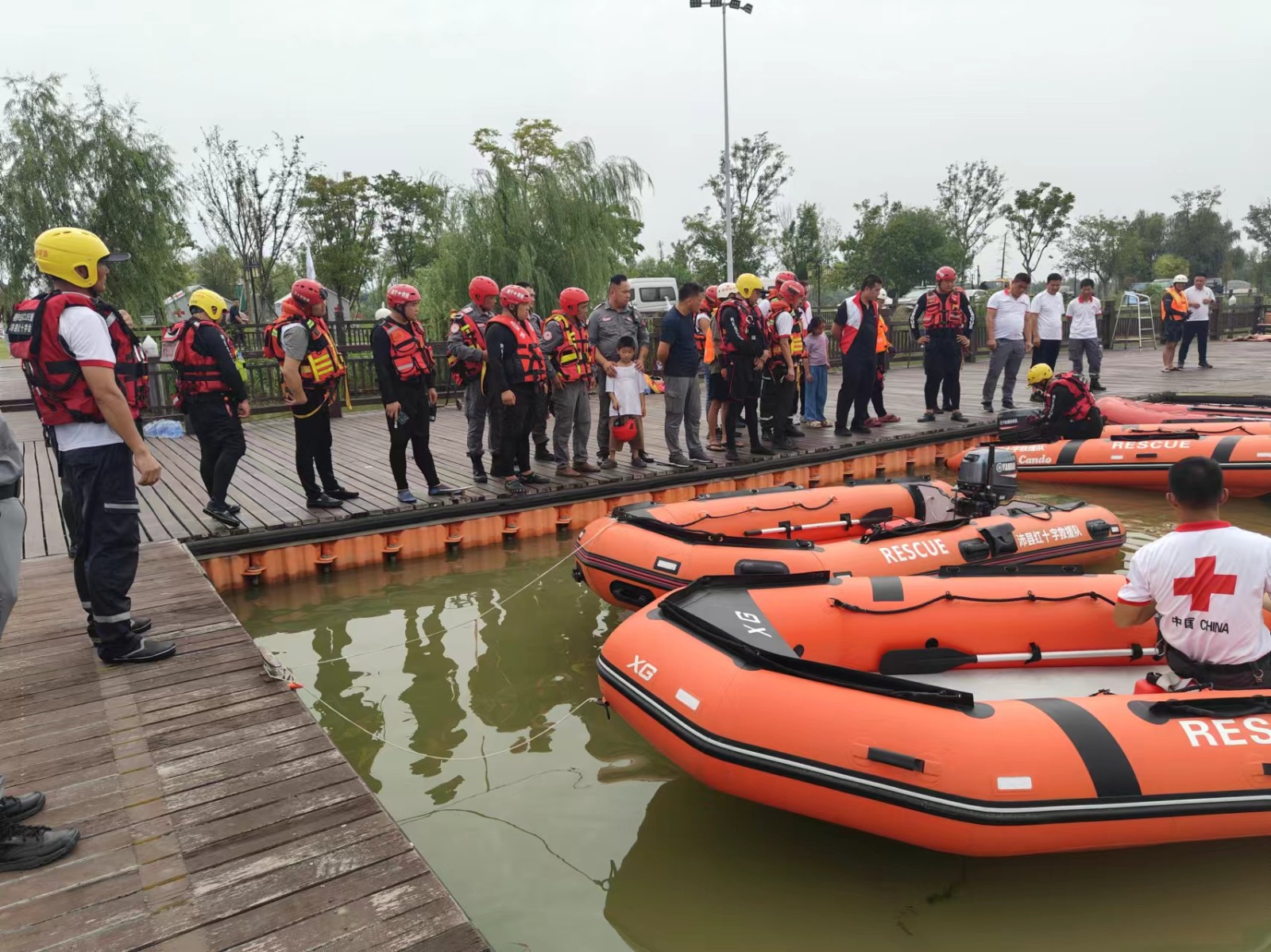 9月7日,新沂市红十字救援队与贾汪、邳州、睢宁、丰县、沛县六支队伍,在贾汪开展联合水上救援演练。
