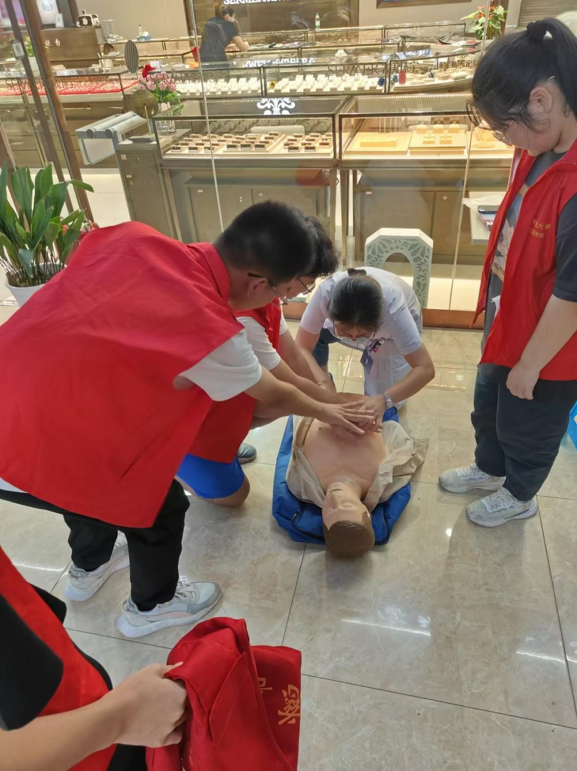 手语歌曲表演结束后,活动特别邀请了资深救护专家缪志慧老师,在现场一处打卡点为高校学生们带来了一场关于心肺复苏等急救知识的精彩讲座与实操演示。缪志慧老师以其丰富的救护经验和独特的教学技巧,迅速吸引了所有学生的目光。她巧妙地利用假人模型,进行了一系列生动逼真的模拟演示,让学生们仿佛置身于真实的急救场景中,深刻体会到了紧急救护知识的重要性和实践性。