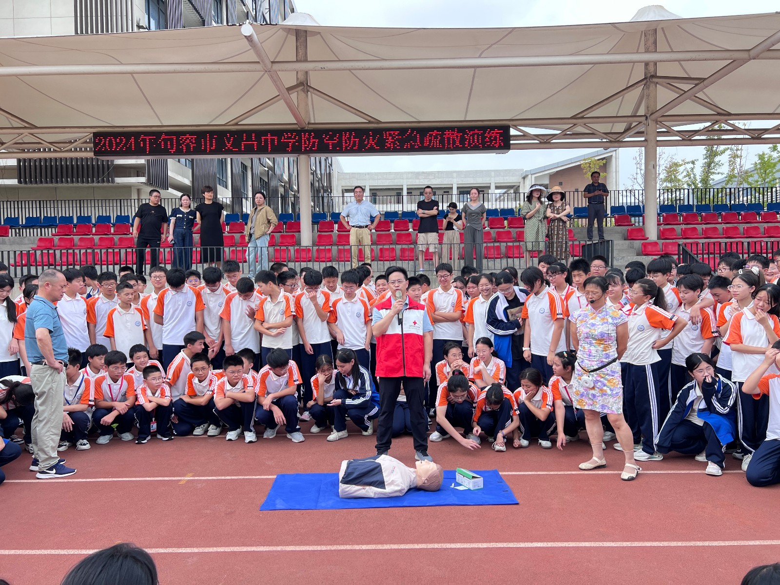 13日,由市教育局、市发改委(国动办)联合举办的师生防空防灾紧急疏散演练活动在市文昌中学举行。市红十字会作为协办单位参与整场活动,并向师生们讲授应急救护知识和技能。