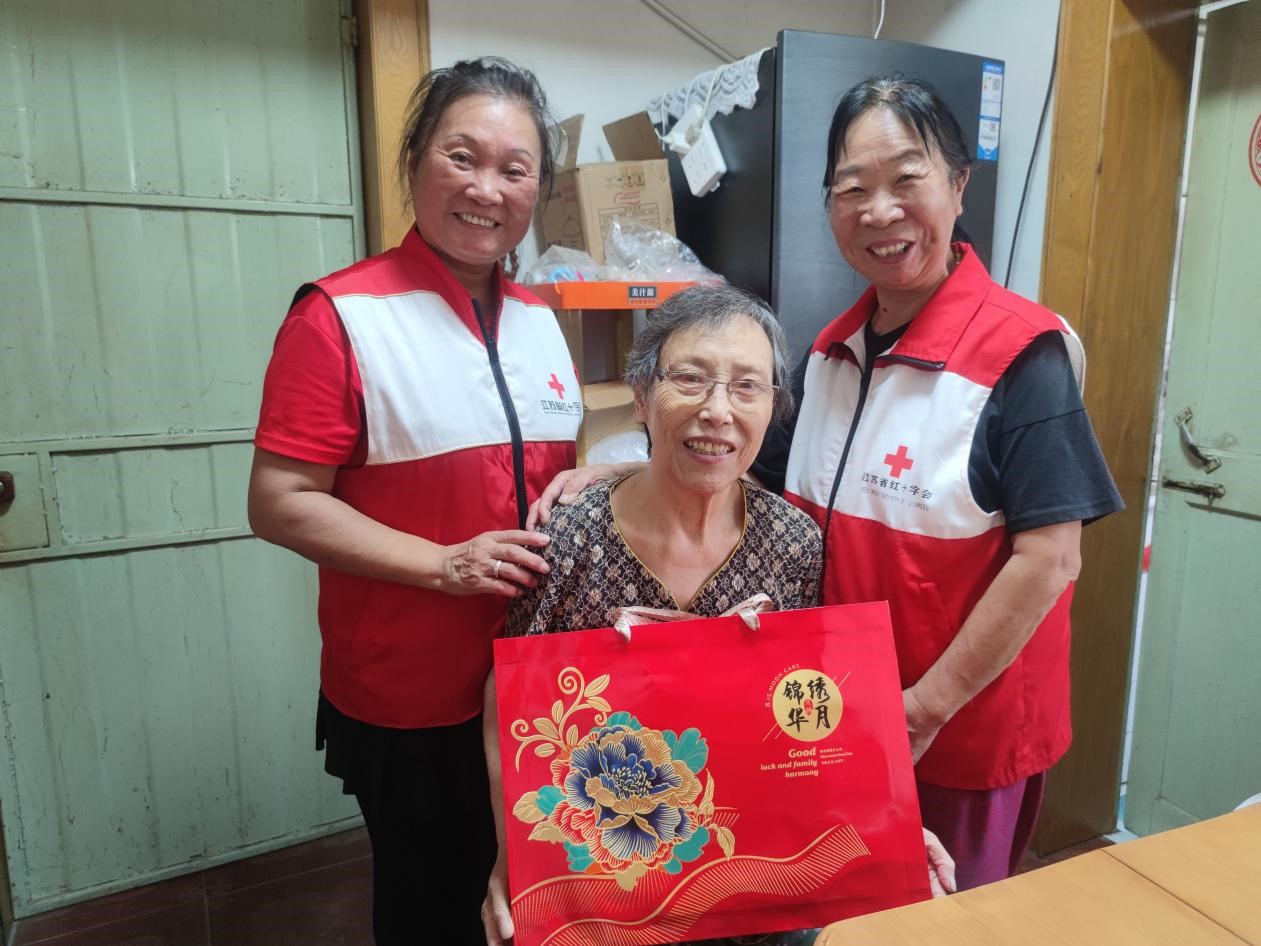 志愿者们先后来到15户老人的家中,把准备好的月饼给辖区90岁以上孤寡独居的老人送去。将一份份温暖与关爱送到老人手中。每到一户,志愿者都与老人亲切交谈,认真倾听他们的所思所盼,为优化接下来的红十字志愿服务打好基础,志愿者们还了解他们的身体和生活状况,耐心叮嘱老人要注意饮食卫生,进行适当锻炼,爱护好身体。