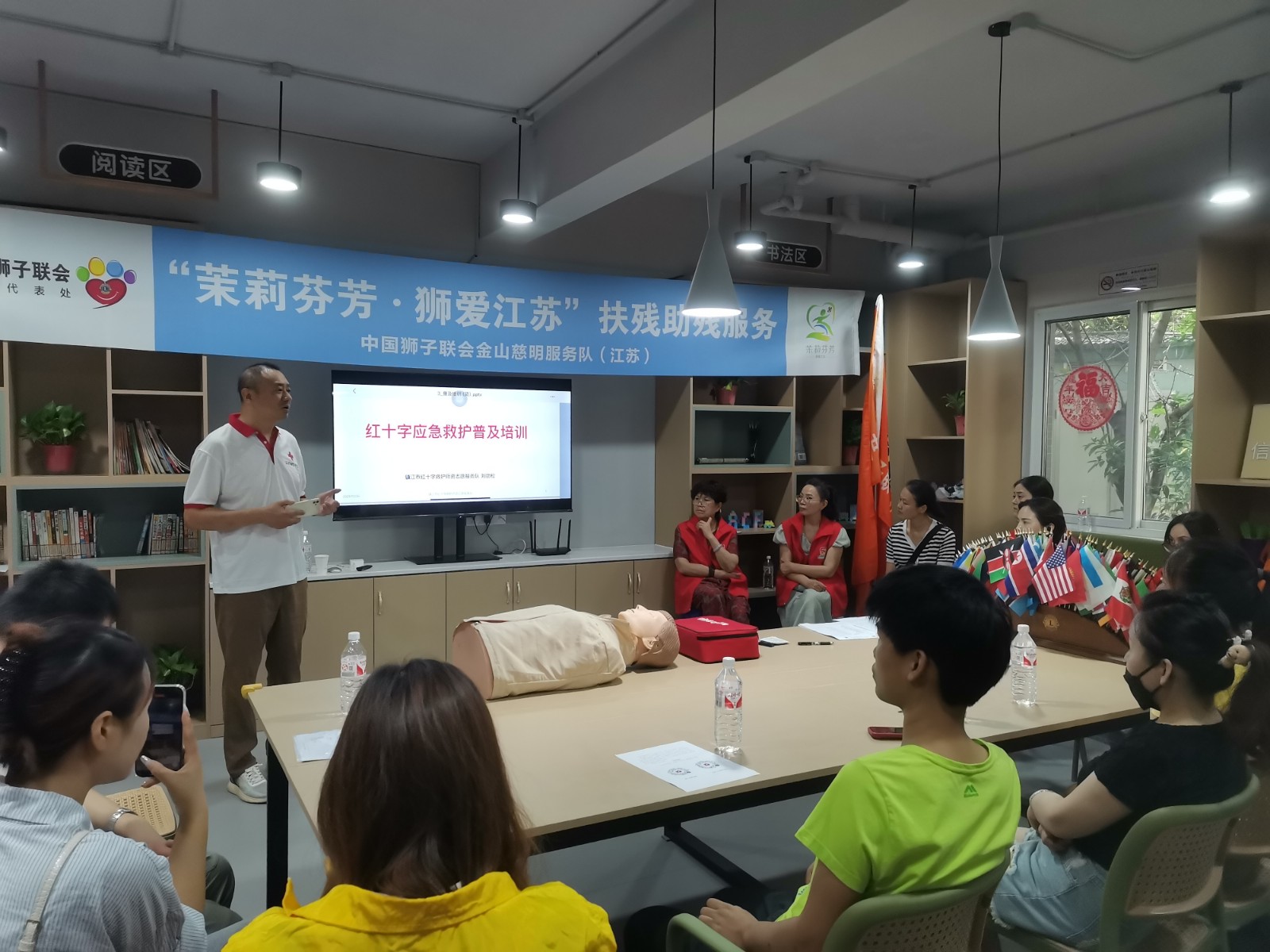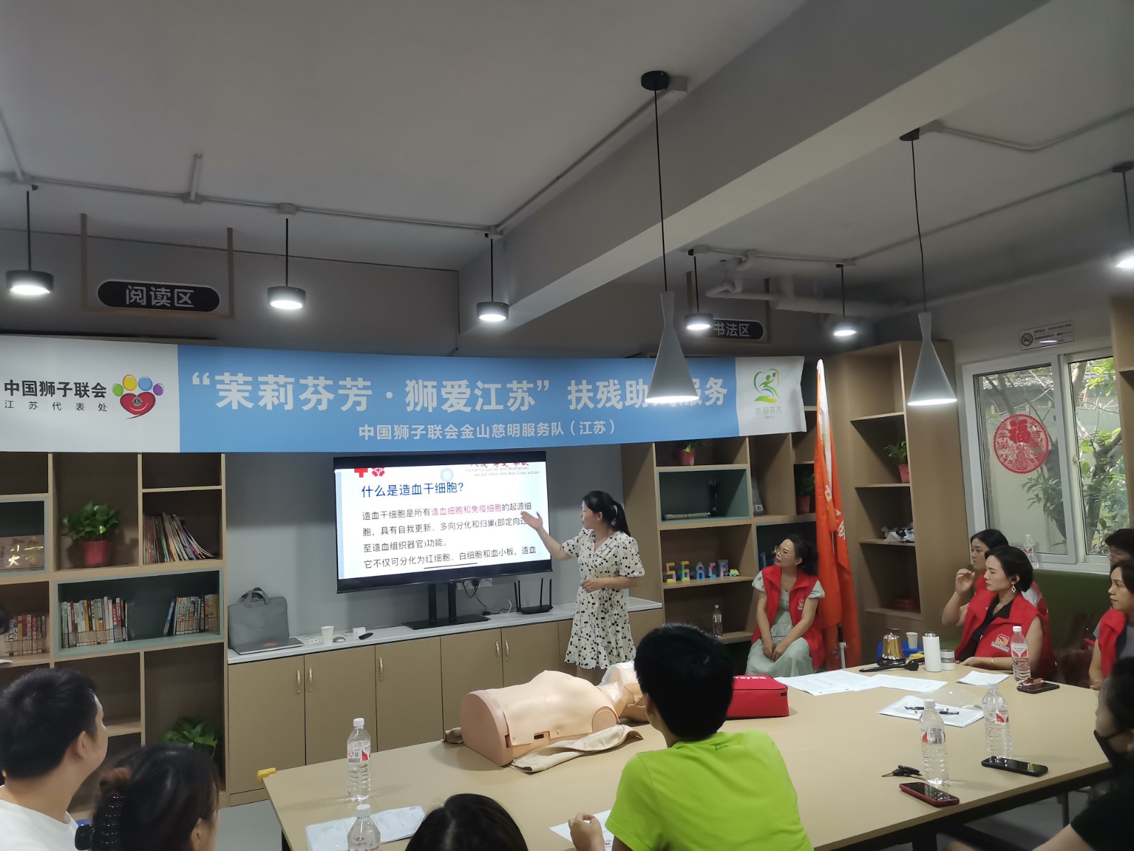 9月9日下午,镇江市红十字会、中国狮子联会金山慈明服务队走进象山街道综合服务中心,为志愿者和社区居民开展“99公益日”活动,普及应急救护和造血干细胞知识,并送上中秋祝福。
