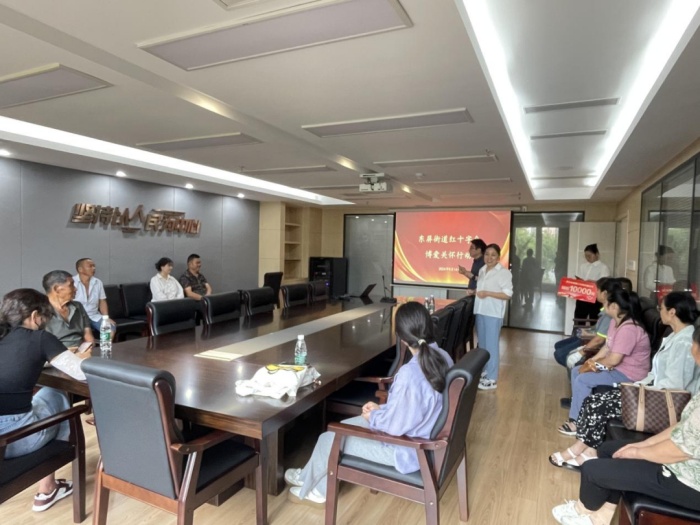 9月14日,中秋佳节来临之际,东屏街道红十字会用募捐到的爱心企业善款对辖区10户困难家庭开展博爱关怀活动,并借此向被慰问对象送上节日的祝福。
