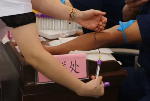 采样现场,消防队员排起了长队,红十字会工作人员播放宣传视频,为他们解答疑问,指导他们填写表格。医护人员耐心细致,动作娴熟为他们采取血样。采样过程很简单,就像做一次普通的血常规检查一样。