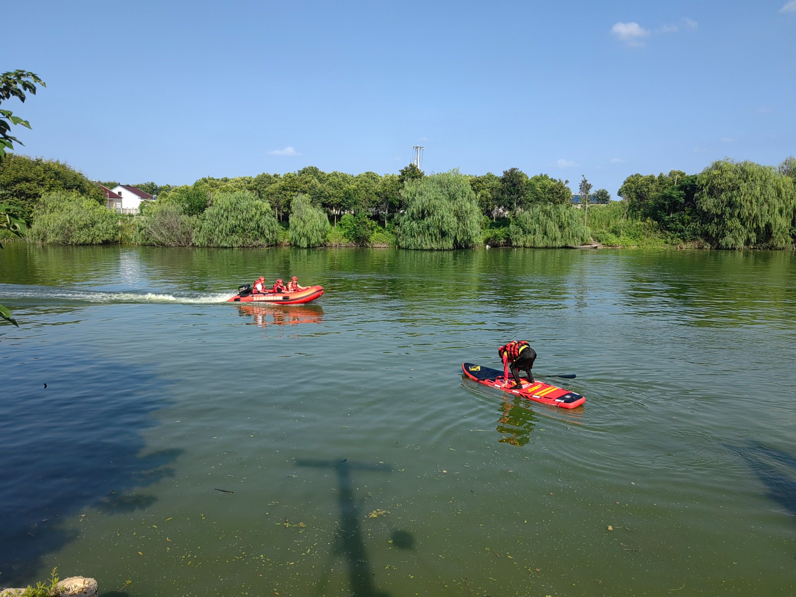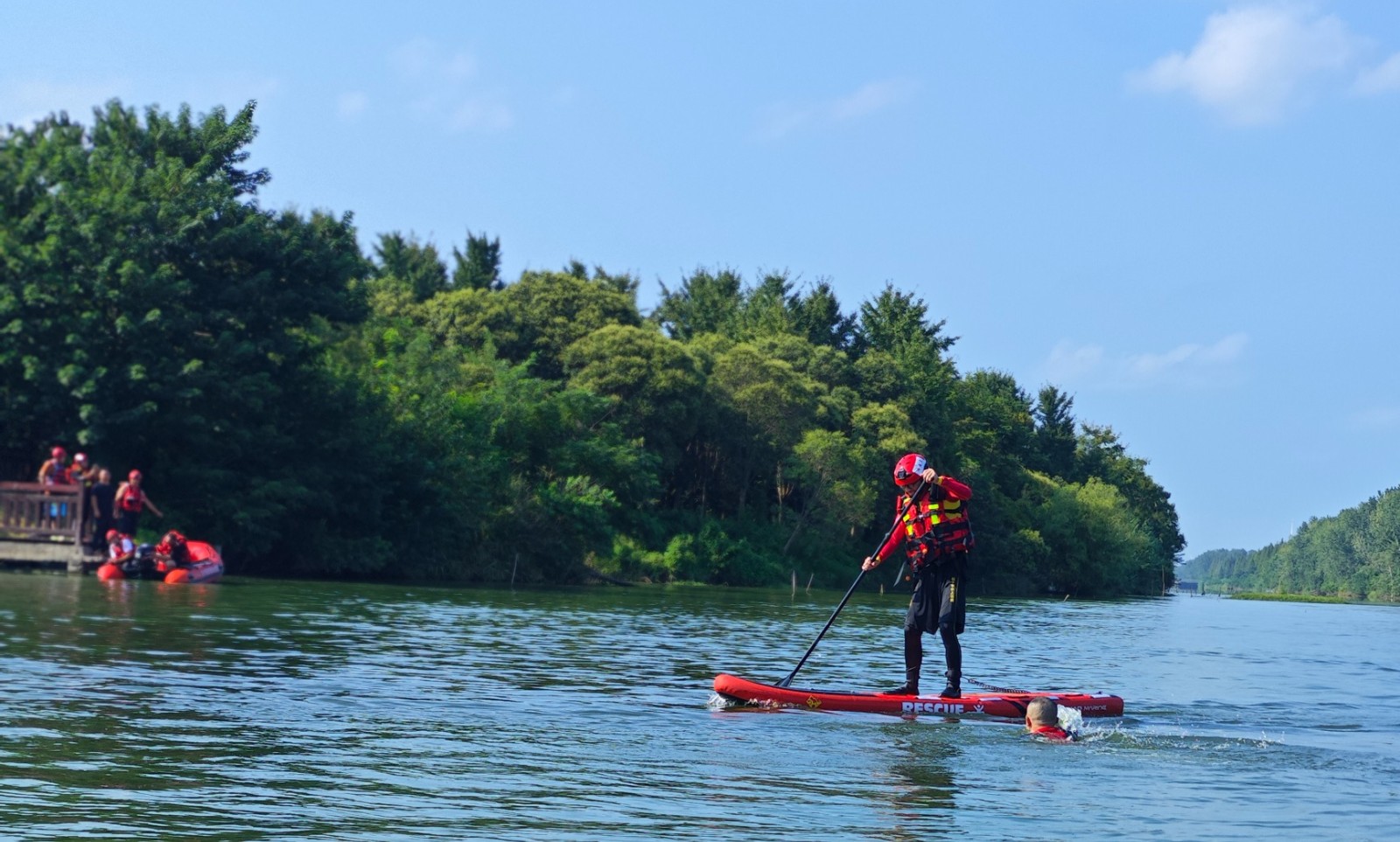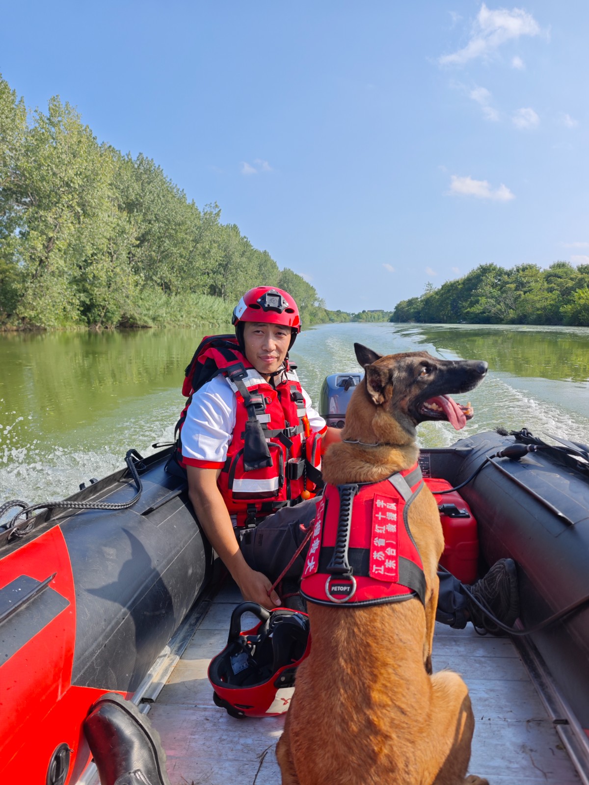 为进一步增强救援队能力建设,提升应急救援综合能力,近日,江苏省红十字(东台)救援队在新街水域训练基地开展“以练促训,以训促战”练兵演练活动。练兵演练活动围绕救生装备使用、舟艇驾驶方法、水上救援技术进行水上实操演练。救援队员头顶烈日,携带救援橡皮艇、浮力马甲、安全绳等设备,进行常规救援技能训练,冲锋舟离靠岸,横列,纵列互救,绕S绕O绕8避障碍、遥控U型救生圈、无人机救援、搜救犬救援、热成像技术等,提升技能刻苦训练等,模拟演练使用冲锋舟快速出动对落水者进行救援、翻船自救,各环节协调配合连贯到位,圆满完成各项演练项目,达到了救援演练的预期效果。