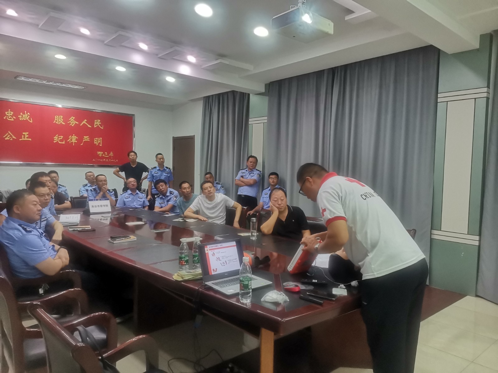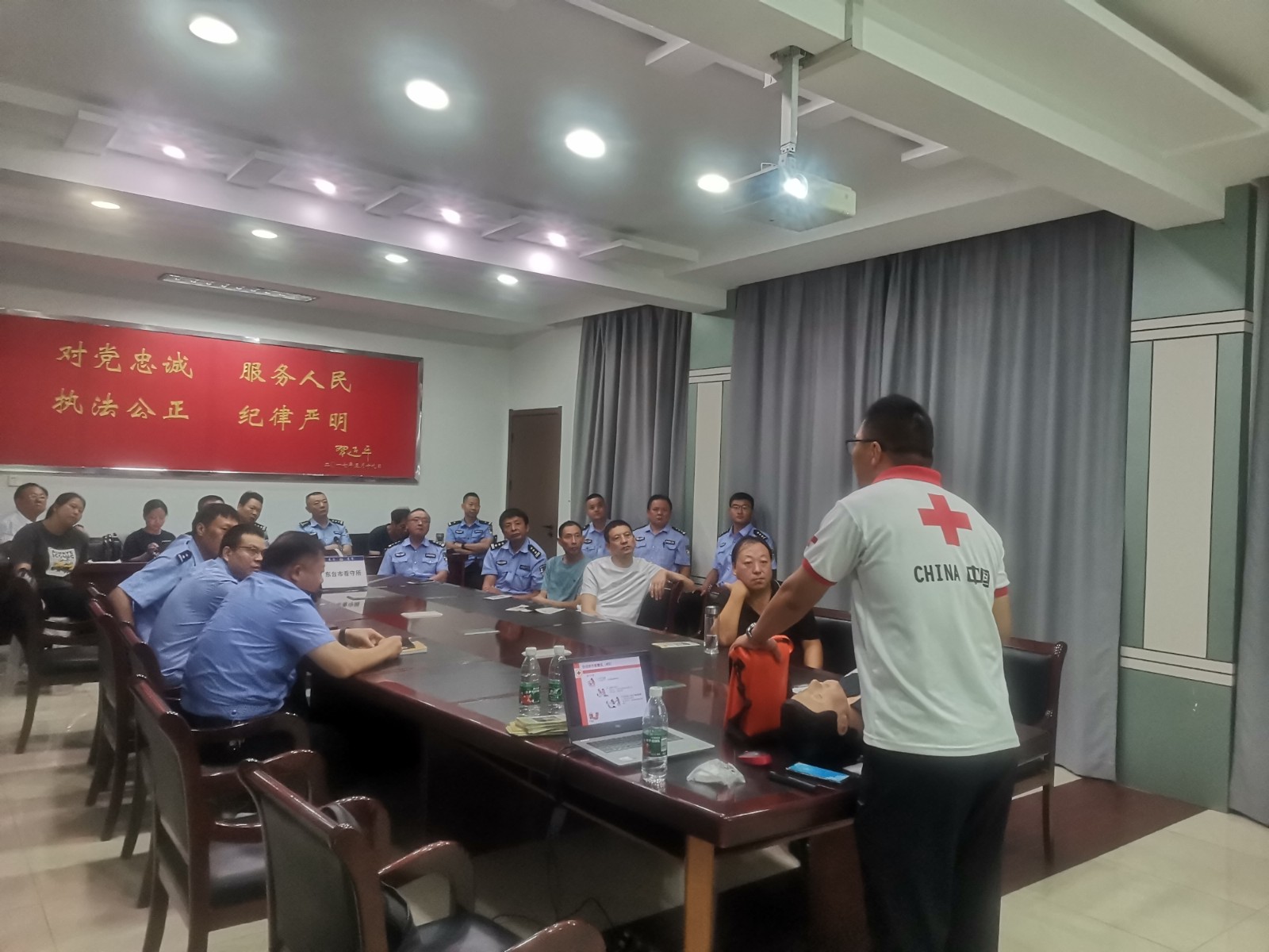 为进一步强化公安局看守所处置突发事件能力,有效保障在押人员生命健康,近日,市红十字会受邀至市看守所为公安干警及工作人员开展应急救护知识培训。