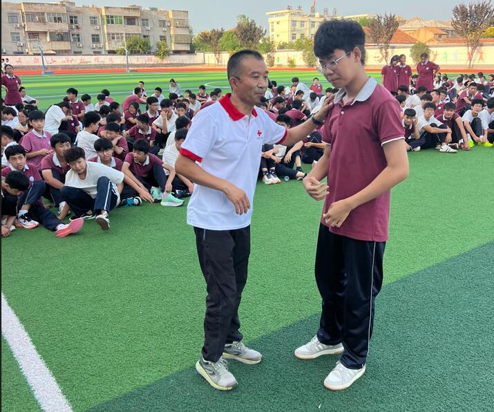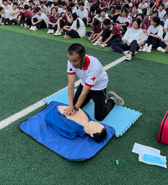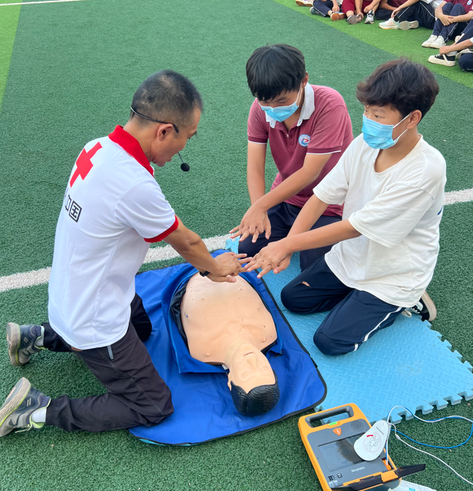 国际红十字会与新红星月会将每年九月的第二个周六定为世界急救日。今年9月14日是第25个“世界急救日”,我校围绕着“急救与运动”为主题开展了应急救护培训。为了提高我校师生的自救和互救处置能力,邓文彬主任为九年级学生和部分老师进行了应急救护知识培训。