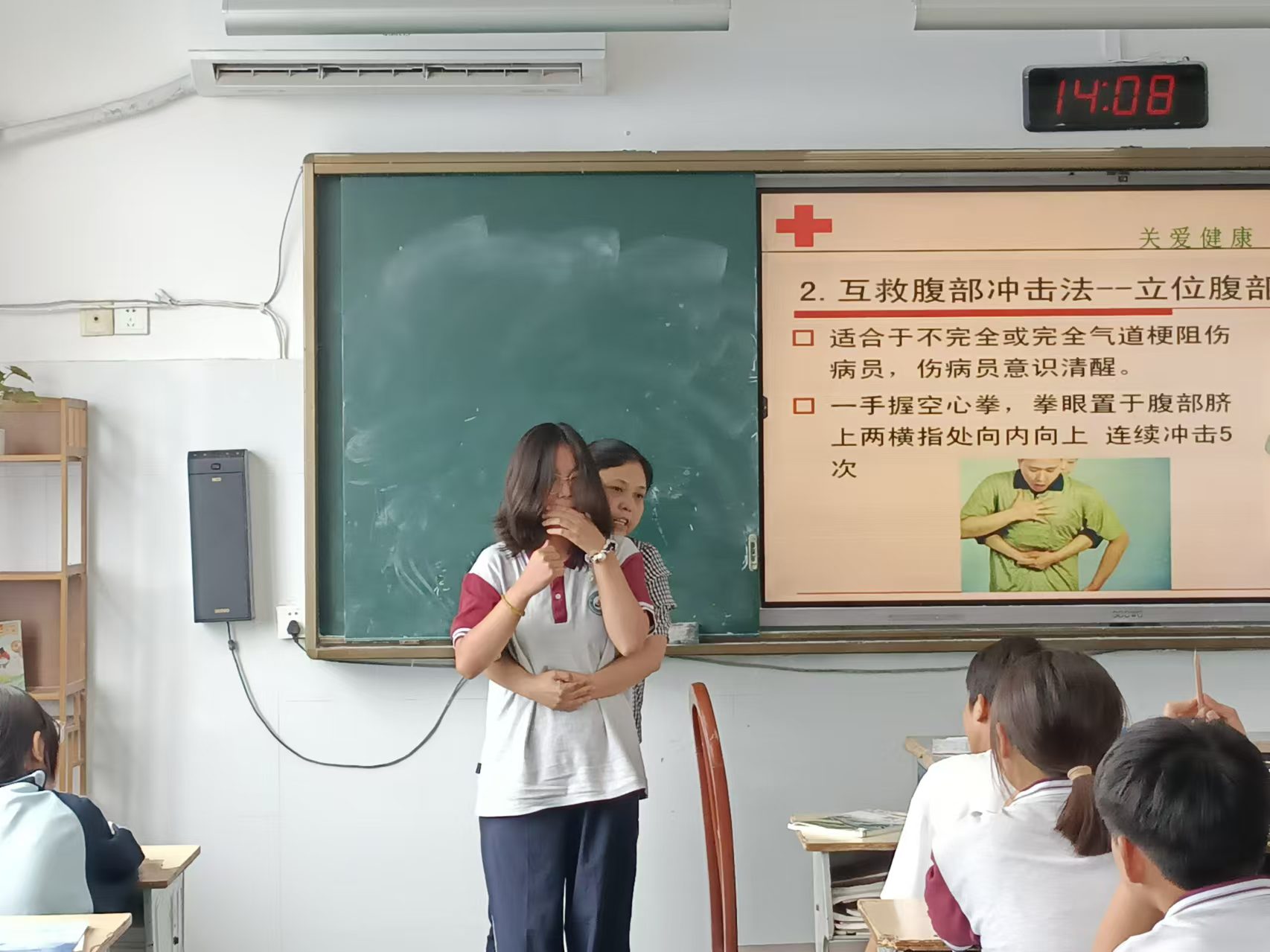 校红十字会秘书长杨继影老师以形式多样,图文并茂的课件展示、深入浅出的理论讲解、生动形象的现场模拟,使同学们受益良多,同学们还在课堂上分享了自己处理紧急事故的方法,充分说明我们的学生有一定的急救意识,通过培训又搭建了良好的学习平台,使得应急救护知识得以广泛传播。
