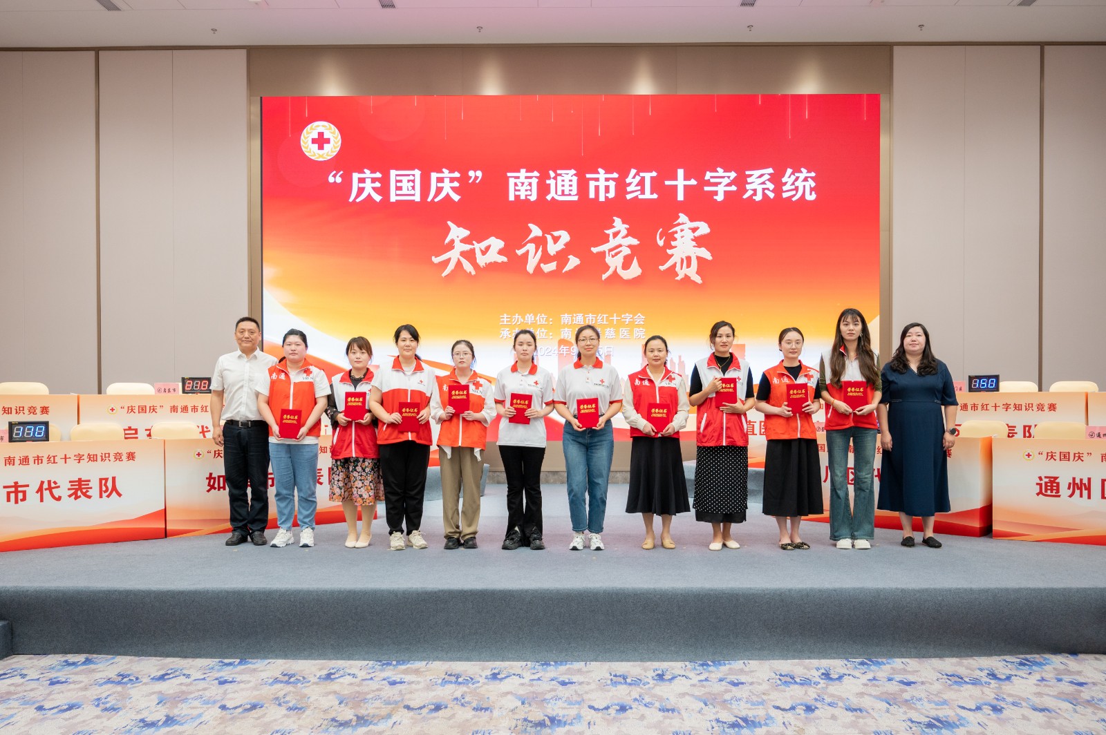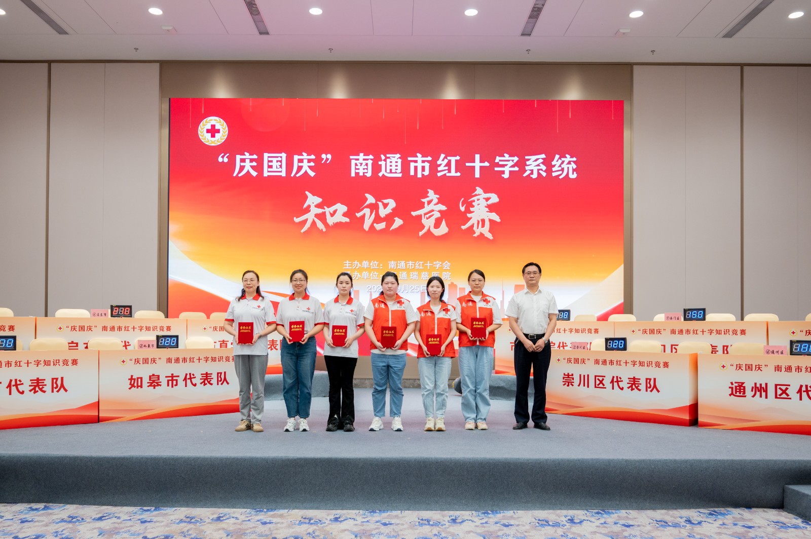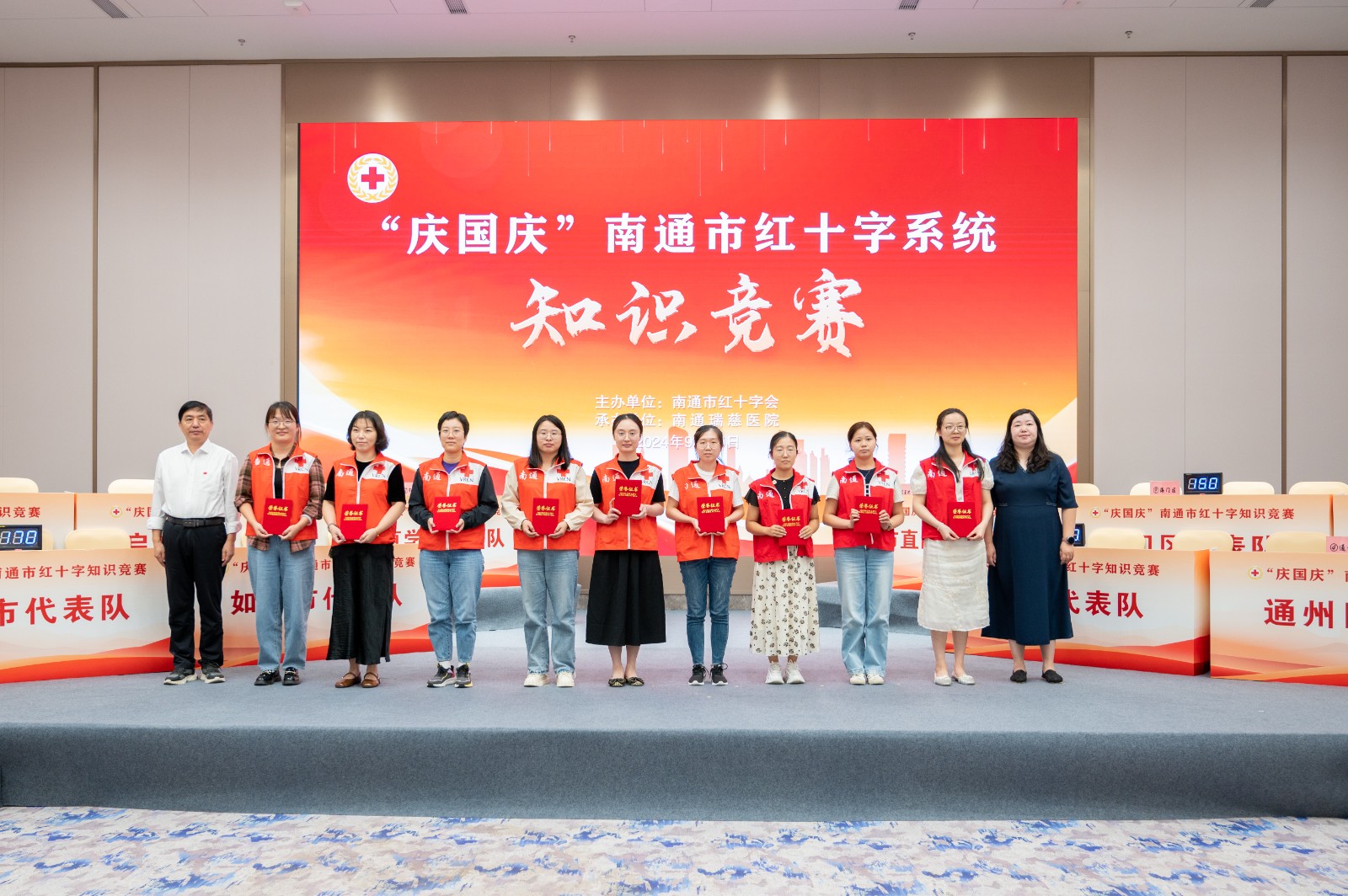 为深入学习贯彻党的二十届三中全会精神,弘扬“人道、博爱、奉献”的红十字精神,展现新时期红十字干部队伍的优秀素质和精神面貌,9月25日下午,“庆国庆”南通市红十字系统知识竞赛在瑞慈医院火热举行。来自全市红十字系统的10支队伍参赛,现场近150人参加活动。