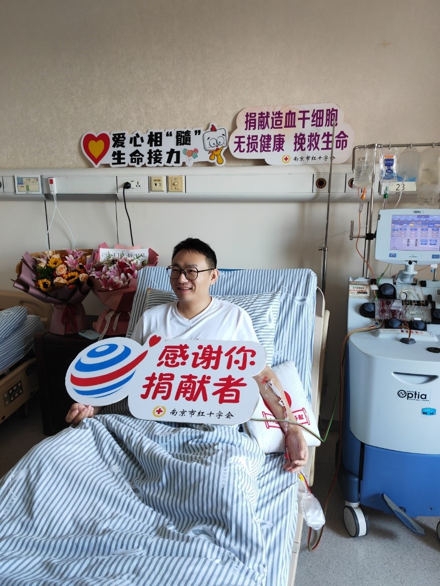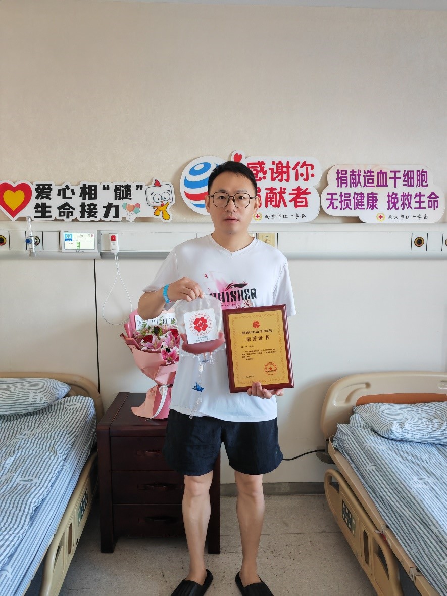 今年37岁的王后是一名热爱生活、乐于助人的年轻人。在日常工作中,他不仅专注于工作技能的提升,平时也喜欢户外徒步,并积极参与公益慈善事业。多年来,王后曾多次参与无偿献血,累计献血量达到了1800毫升2020年,在一次单位组织的无偿献血活动中,王后听红会工作人员介绍了造血干细胞捐献知识,他当即加入了中华骨髓库,期待有朝一日能帮到有需要的人。今年4月份,他接到南京市红十字会工作人员的电话,称他与一名病患初步配型成功,惊奇之余,他没有犹豫,当即答应捐献 。“因为我之前就了解过,造血干细胞捐献无损健康。”王后说,他感到有责任尽自己的力量救助那位素不相识的朋友。“从得知匹配成功的那一刻起,无论是单位的领导、同事还是家人,都给了我莫大的支持与鼓励。他们不仅在工作上为我提供便利,也在生活中给予我很多关怀,让我感受到了力量与温暖。”王后说,他本人也希望能通过自己的捐献行动,激励更多人加入到造血干细胞捐献的队伍中来,共同为社会增添一份温暖。