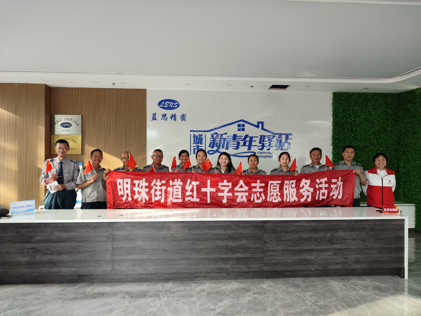 9月25日下午,在国庆节即将来临之际,明珠街道红十字会走进电子信息产业园的青年公寓二期九号楼大厅,开展了“迎国庆 送健康 护平安”志愿服务活动。