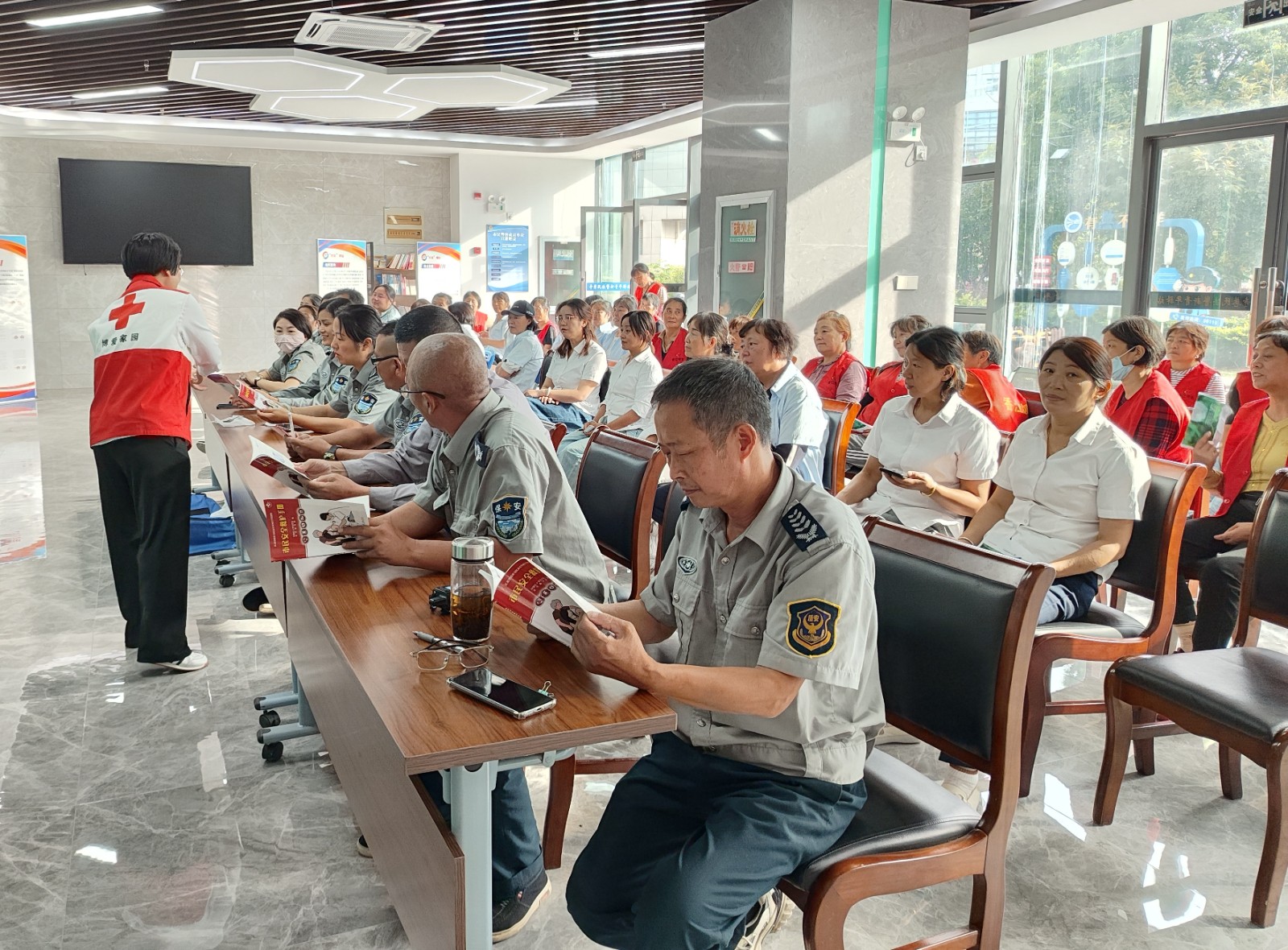 此次活动的被服务对象是共计50余人,主要是江苏香江物业发展有限公司、泰州市盾安保安服务有限公司、泰州蓝思科技有限公司、泰州鑫发资产管理服务有限公司的相关工作人员。明珠街道红十字会志愿者向到场的人员发放了《市民安全救护手册》、造血干细胞宣传折页及人体器官捐献海报等宣传资料。保安队长表示,活动结束后将继续好好学习《市民安全救护手册》上的内容,并在全队推广学习,引导保安们与自己的工作结合起来,增强自身安全救护本领,守护好一方平安。