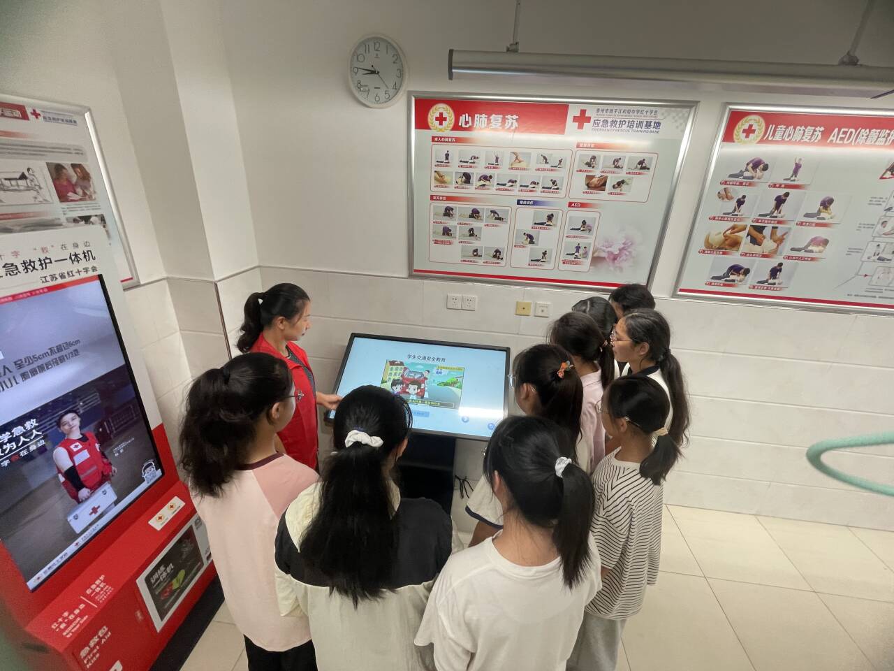 为进一步提高广大师生及家长的应急救护技能,筑起校园安全防线,9月30日,学校部分师生会员在新建的省级生命健康安全体验教室参加了急救知识普及活动。由高港区红十字应急救援队救护师资陈银慧担任讲师,讲解心肺复苏术、AED使用方法、海姆立克急救法等知识。培训临近结束,老师、学生会员和家长代表们分批次进入学校生命健康体验教室,分组复习要点、两人一组进行实践操作。 本次救护培训帮助师生会员们巩固了专业急救技能,提高了在遇到突发状况时能够准确、迅速采取有效急救措施的能力,为保护师生的健康和安全打下了坚实的基础。