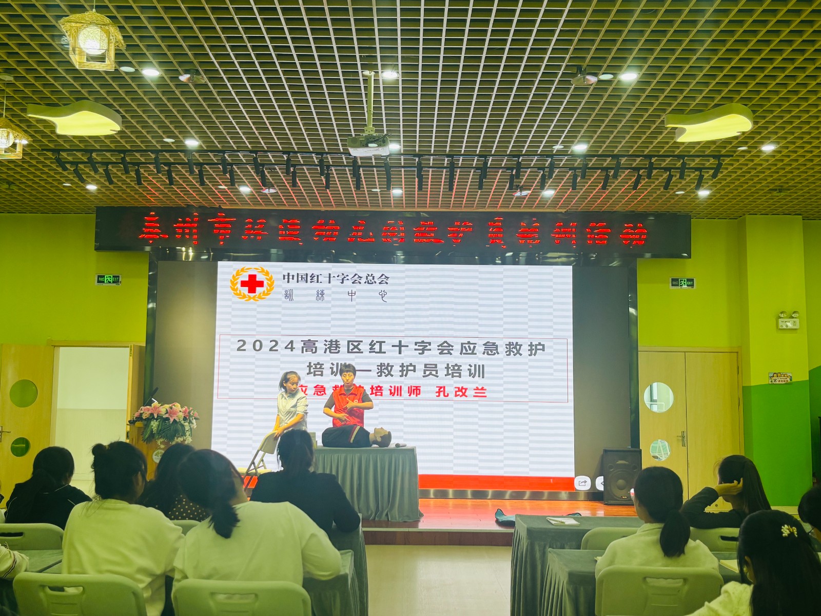 为进一步增强幼儿园教职工应急救护、自救能力,普及急救、救援医学科普常识,提升教职工应对突发事件以及意外伤害事故的应急救援和自救互救能力,泰州市环溪幼儿园邀请高港区红十字会培训讲师为全体教职工开展了应急救护培训活动。