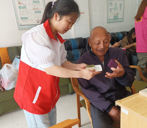 在重阳节来临之际,长沙镇红十字会前往敬老院开展敬老活动。活动现场,志愿者们为老人们带来了竹编画和簪花,让老人们感受传统艺术的魅力;还为老人们发放了重阳糕,送上甜蜜的节日祝福;同时开展了义诊活动,为老人们检查身体,关注他们的健康状况。此次活动给敬老院的老人们带去了温暖与关怀,让他们度过了一个欢乐又有意义的节日。