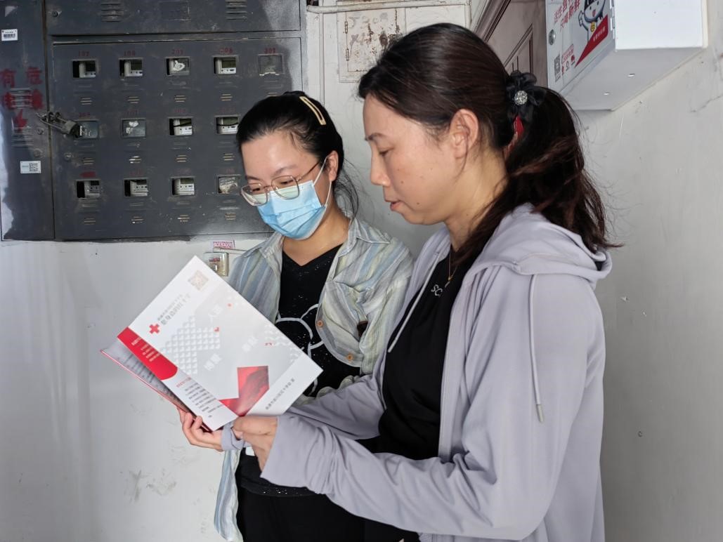郭里园社区的工作人员在进行老小区改造安全巡查的同时,入户开展红十字宣传折页的发放。工作人员积极与困难群众交流谈心、了解情况,向困难群众介绍了红十字人道救助的相关政策,为年底的慰问救助活动打好基础。