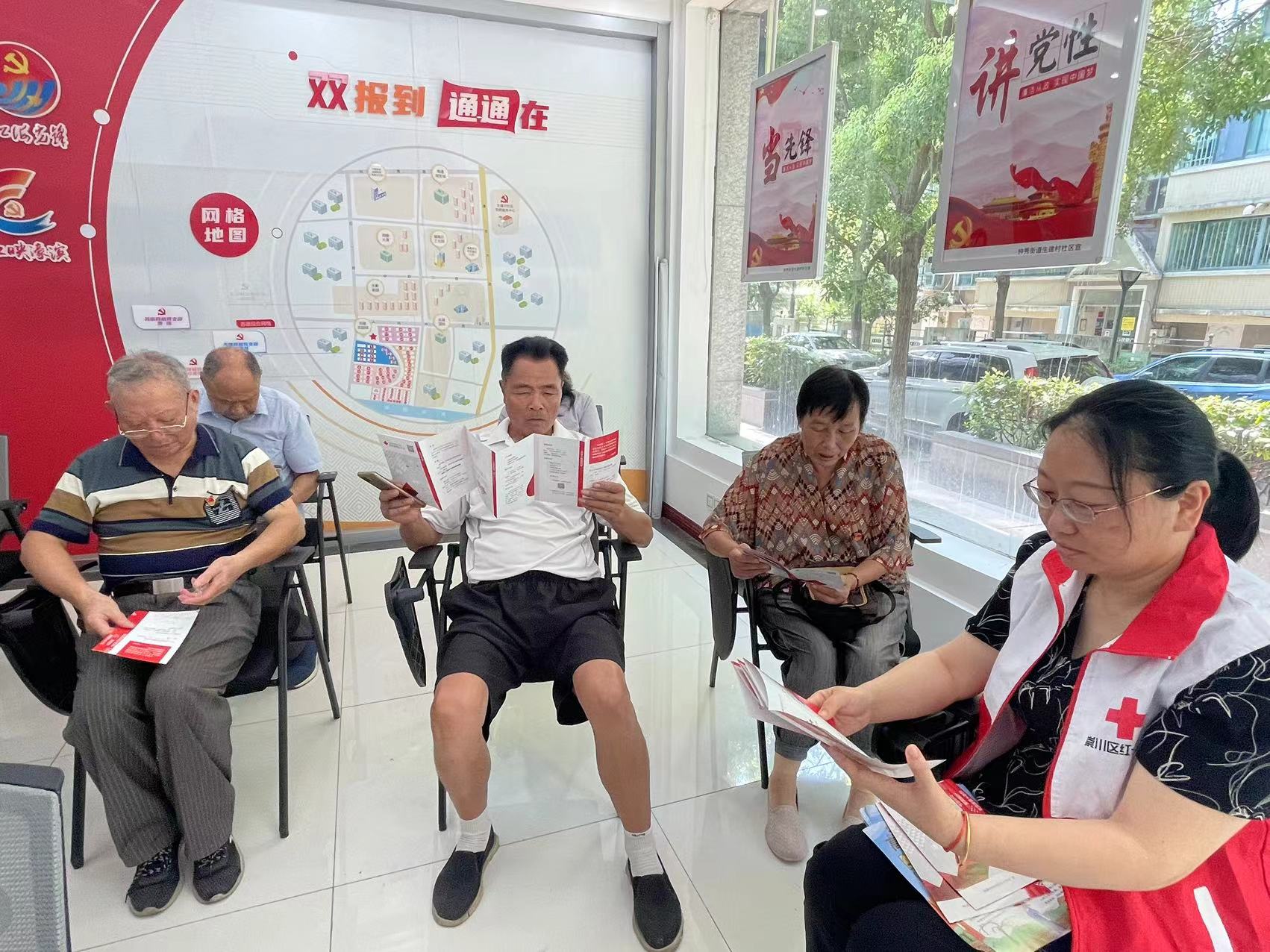 各社区红十字及博爱家园志愿者们通过辖区电子显示屏滚动播放宣传标语、在辖区的市场及居民楼等人口聚集较多的场所现场发放宣传单、开展救护培训等方式普及急救知识。