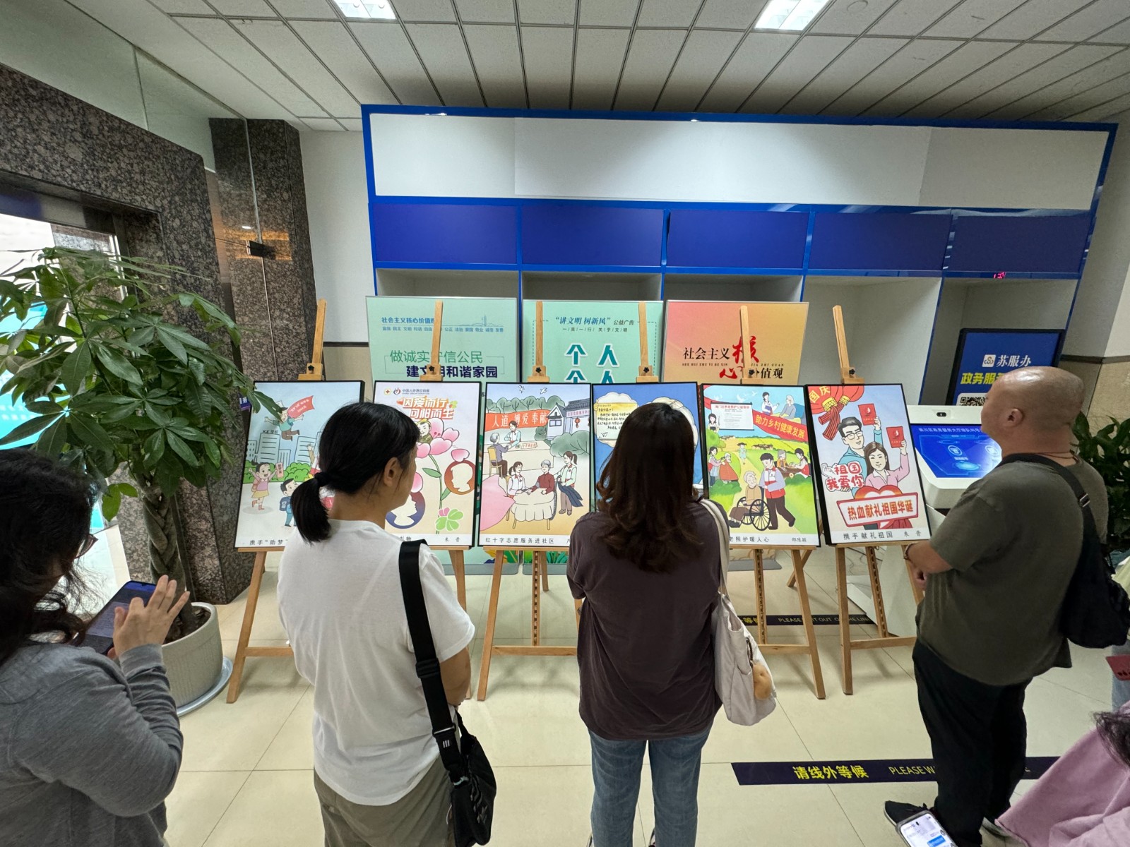作品展览中展出的优秀漫画作品立意深远、艺术感染力强,形象地描绘了“三救”(应急救援、应急救护、人道救助)、“三献”(无偿献血、造血干细胞捐献、遗体和人体器官捐献)、志愿服务等红十字业务中涌现的先进典型和感人故事,以人民群众喜闻乐见的漫画艺术形式展现红十字工作,传播红十字文化,吸引了不少市民朋友驻足观摩作品展。