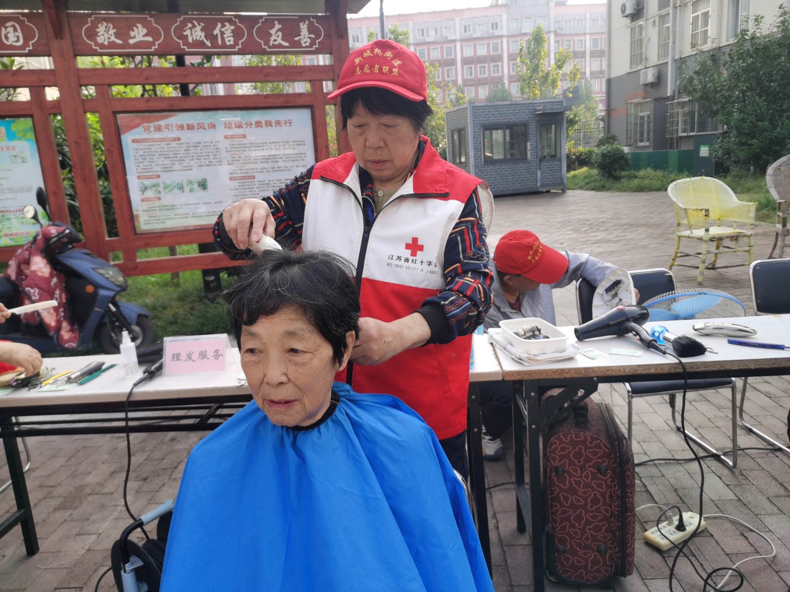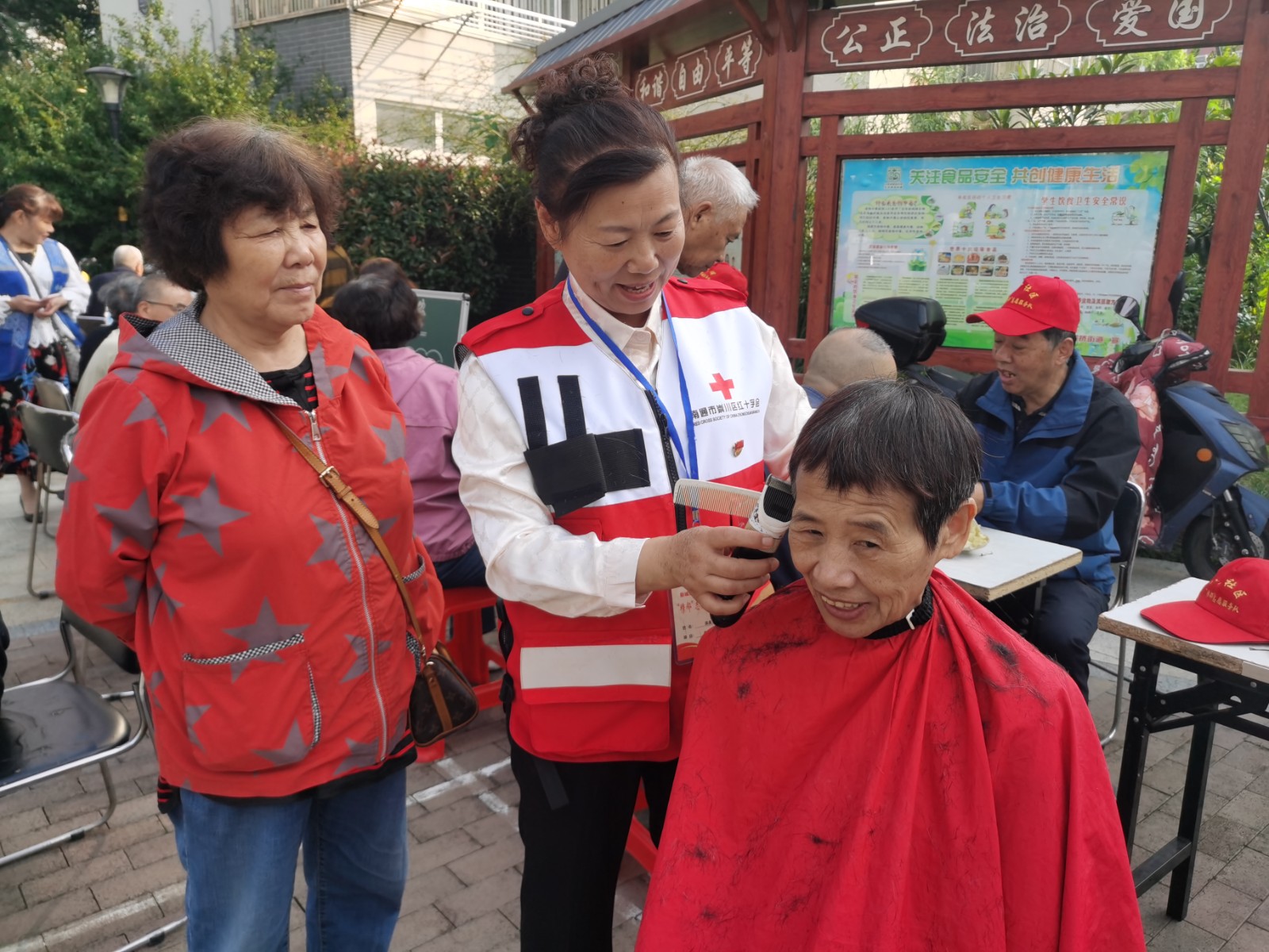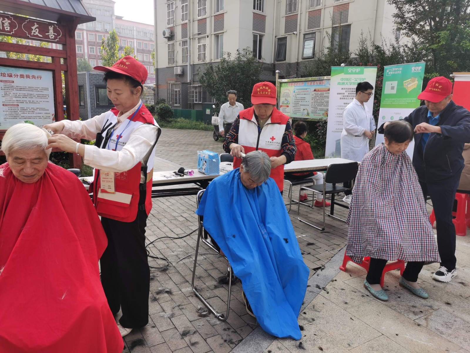 参加现场志愿服务活动的有义诊、修小家电、理发等“老行当”便民服务。医生志愿者们为辖区老人免费量血压、测血糖等项目,详细了解老人们的身体状况。认真细致的解答问诊居民的健康问题。区市场监管局新城桥分局的在职党员志愿者针对过期药品如何识别、保健品如何鉴别等进行详细讲解,普及安全用药常识。江苏银行学田支行的志愿者也为辖区老人讲解第三代社保卡办理,宣传电信反诈案例。美科物业的志愿者宣传文明养犬、垃圾分类等,爱心义剪志愿者洪良玉、叶桂芳等凭借娴熟的技术,为老年人精心理发,让老人们的精神面貌也焕然一新,一系列志愿服务活动让居民在家门口享受到了实实在在的便利。