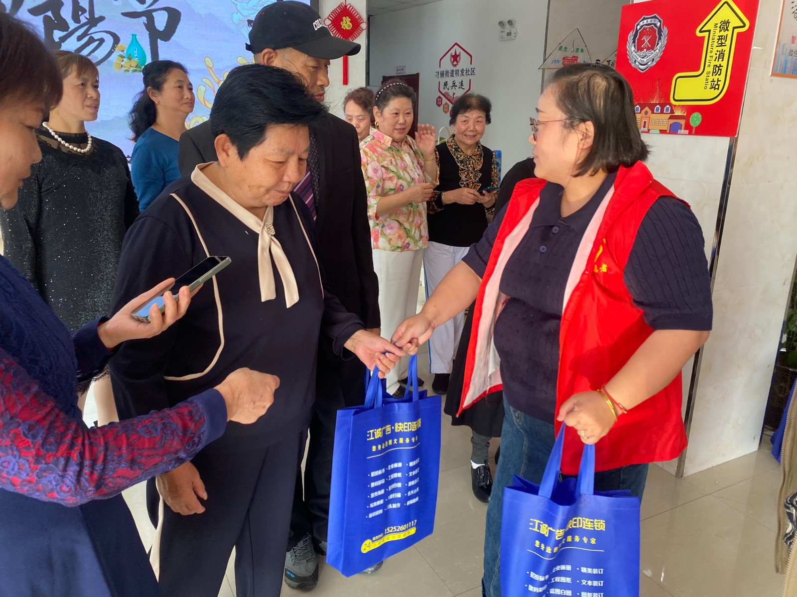 活动最后,社区工作人员、红十字志愿者们齐心协力,为老人送上了慰问品,共同欢庆佳节。他们将一份份温暖与关爱递到老人手中,同时主动询问老人们的生活近况,耐心叮嘱老人们要注意饮食卫生,好好爱护身体,适当进行锻炼。老人们连连点头答应,都笑在脸上,暖在心里。