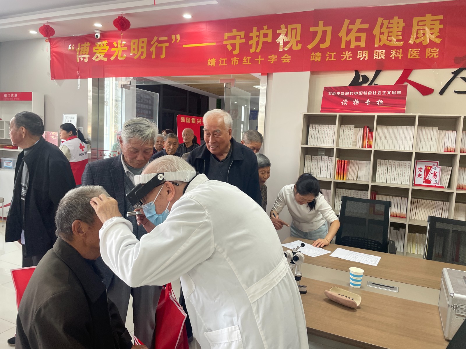 10月11日在兴阳社区,红十字志愿者为老人们讲解生活中的注意事项,市红十字会副会长李剑为老人们发放重阳糕和毛巾被。不仅如此,靖江市红十字会联合靖江光明眼科医院开展“博爱光明行”义诊活动,参加义诊的红十字志愿者专家们为老人们测量视力,检查眼睛并为他们答疑解惑。