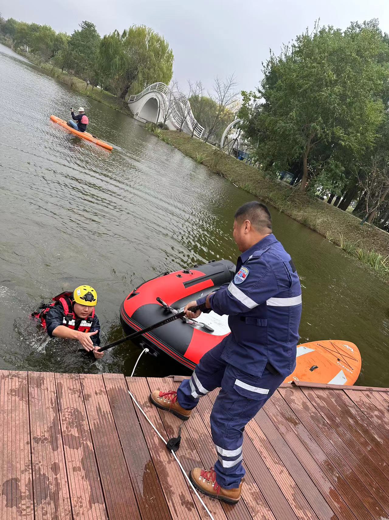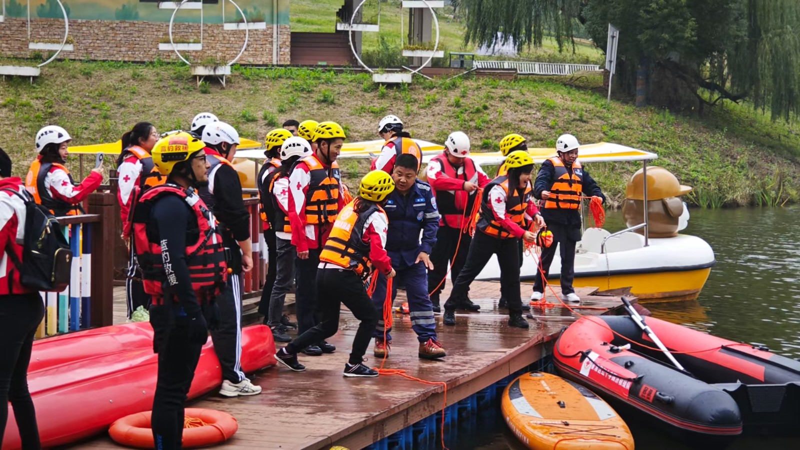 下午,培训重点转向洪涝灾害岸上救援和操舟救援。岸上救援培训中,队员们学习了如何对溺水者进行急救、如何正确使用救援器材等技能。操舟救援环节更是紧张刺激,队员们在水上进行实际操作,熟练掌握操舟技巧,为在洪涝灾害中快速、有效地开展救援行动奠定了坚实基础。