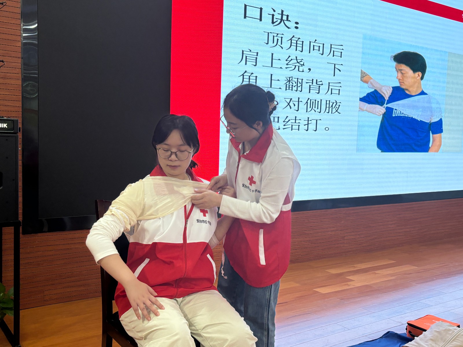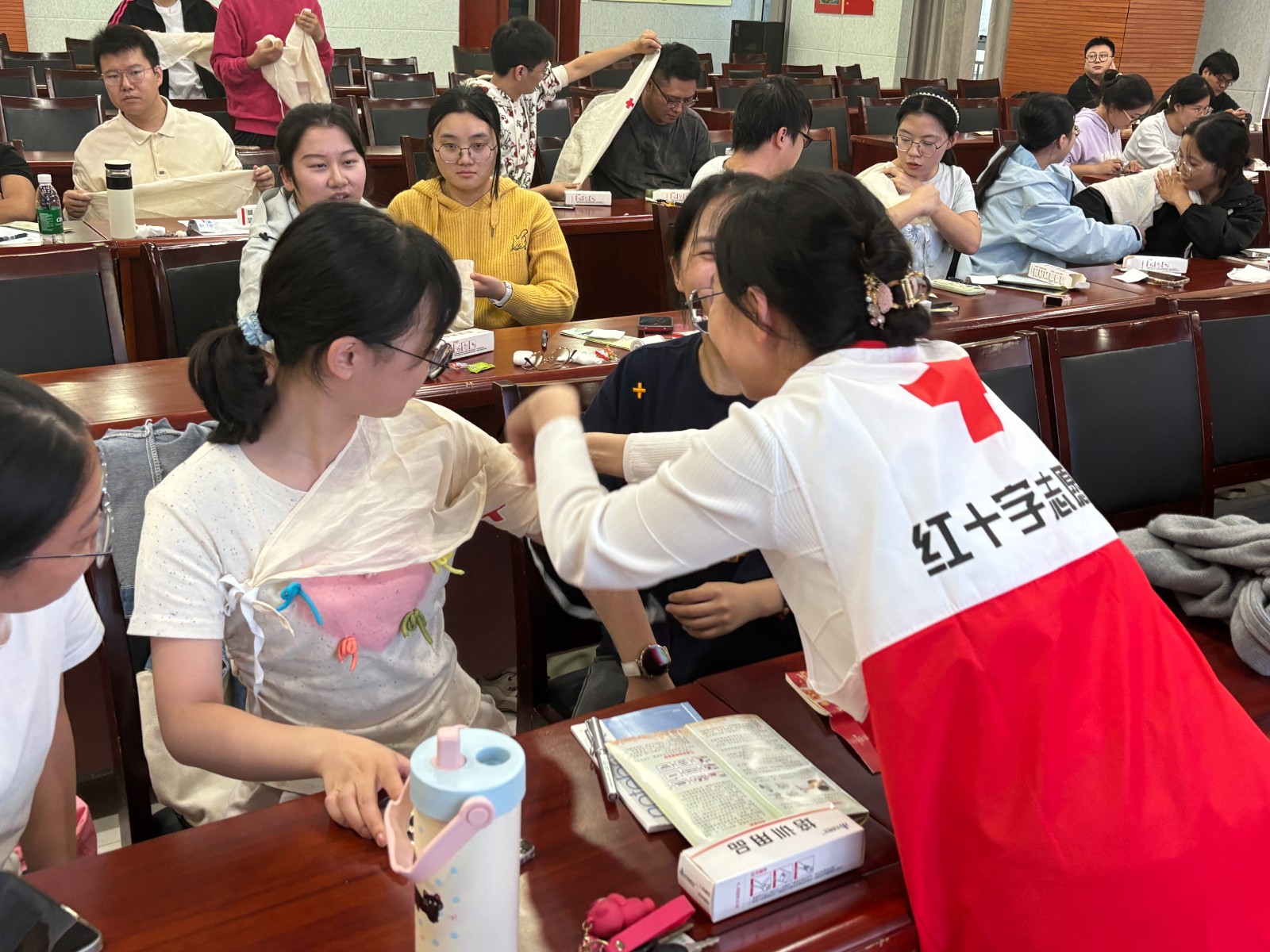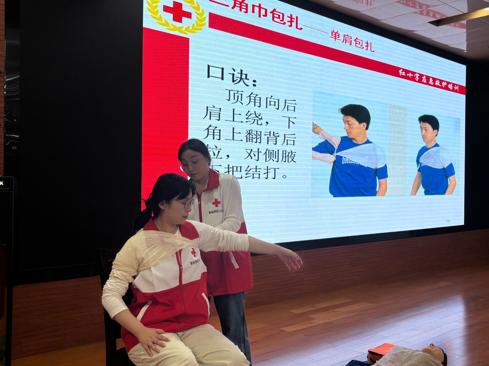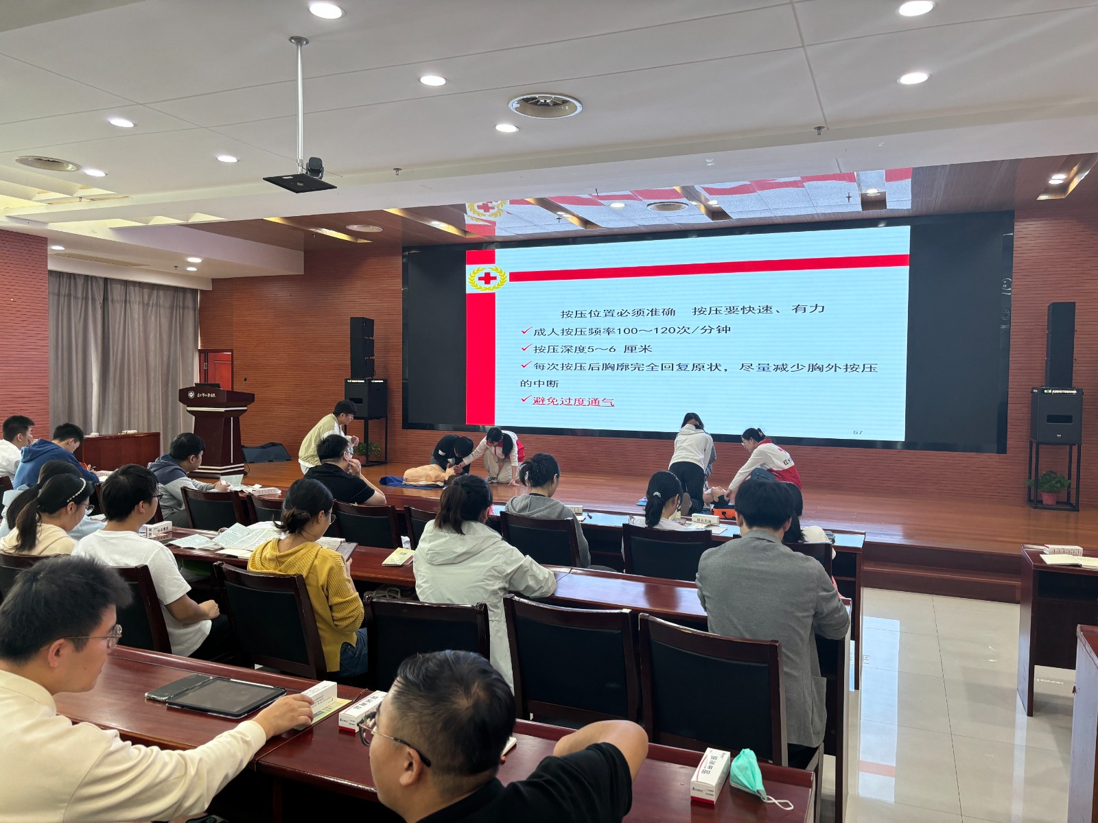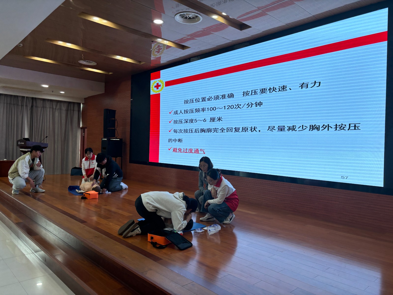 培训活动由省红十字救护师资教学。分为理论讲解、现场演示、实践操作、考试四个环节,采用理论学习和操作演示相结合的教学方式,重点介绍了红十字运动基本知识、心肺复苏(CPR)、气道异物梗阻、创伤救护等应急救护知识,并现场演示了心肺复苏、海姆立克急救法和常见创伤急救包扎的具体步骤。