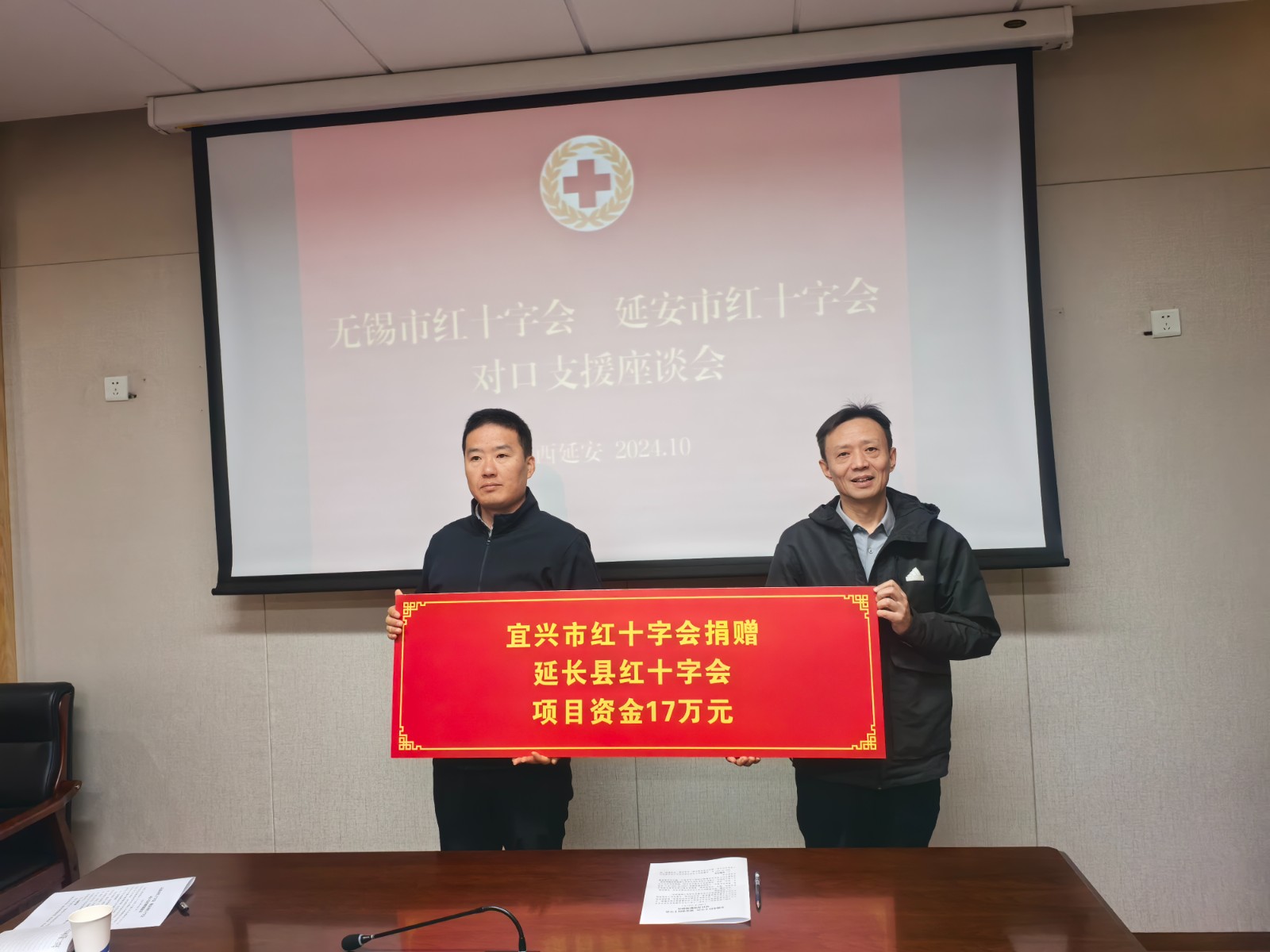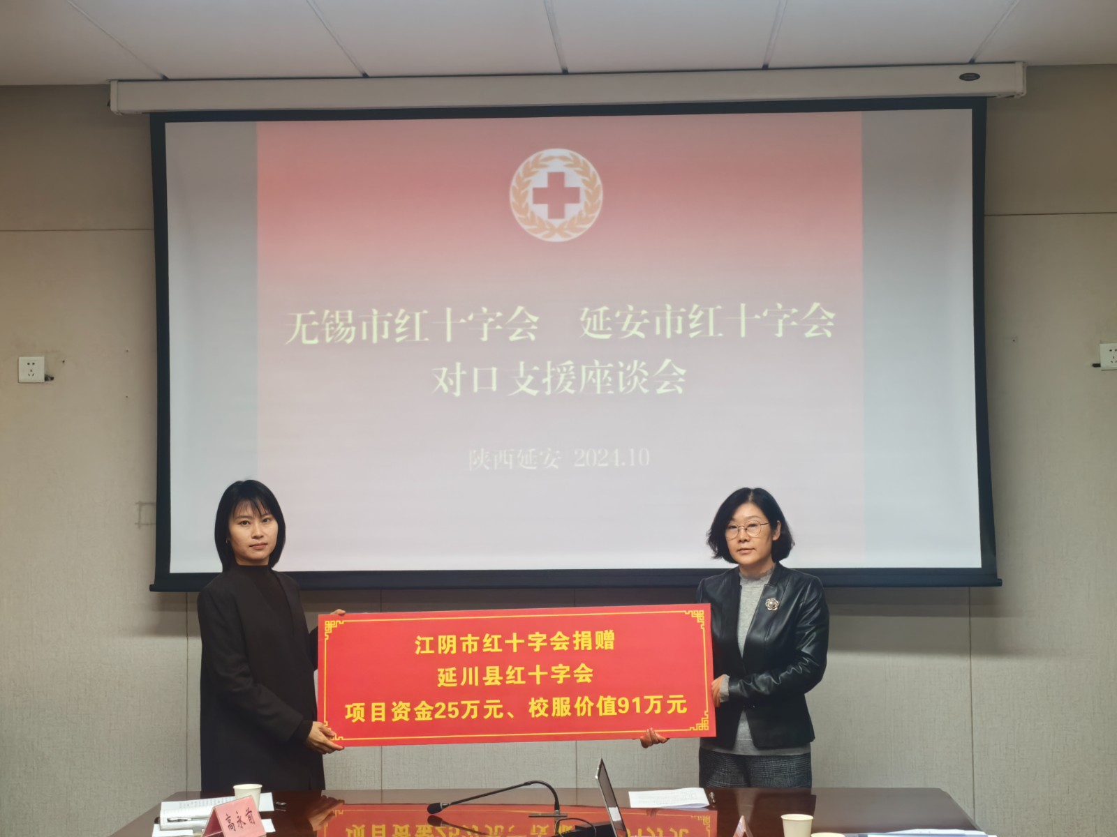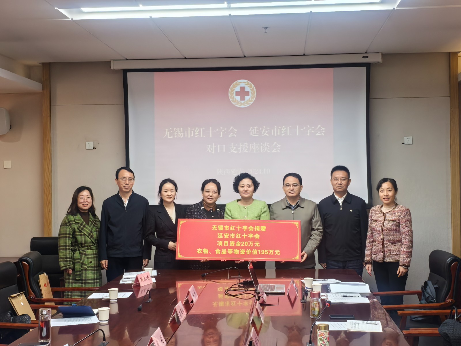 无锡市红十字会与延安市红十字会共同签订了《无锡市红十字会、延安市红十字会对口合作框架协议(2025年--2027年)》。调研期间,市红十字会与延安市红十字会召开对口协作座谈会,双方就加强交流互鉴、务实推进项目合作等进行了深入研讨。市红十字会党组书记,常务副会长陈烈蓉,延安市红十字会党组书记、常务副会长周莉分别介绍了两地红十字事业高质量发展情况,总结回顾近年协作共建成果,共叙对口协作山海情谊,并举行了捐赠仪式,无锡市红十字会向延安市红十字会捐赠资金20万元及价值195万元衣物、食品等物资;江阴市红十字会向延川县红十字会捐赠援助项目资金25万元,捐赠校服价值91万元;宜兴市红十字会向延长县红十字会捐赠援助项目资金17万元。