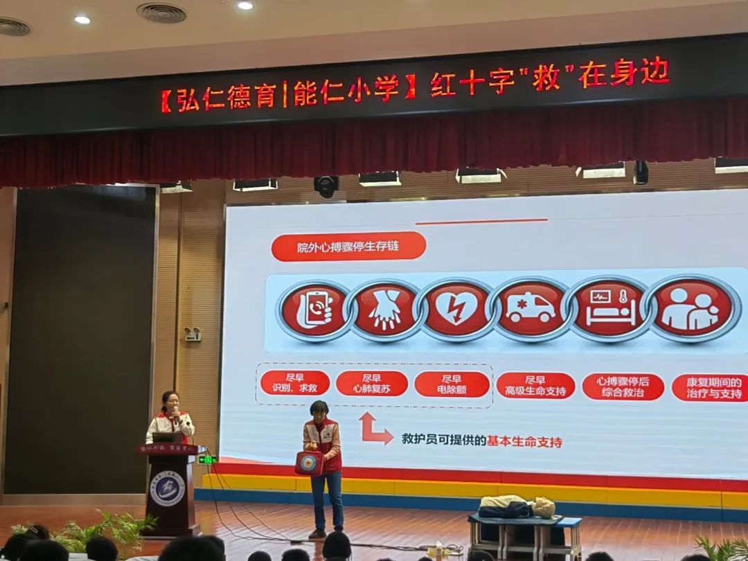 每年的9月至10月是“红十字青少年活动月”。为预防和减少学校意外事故的发生,提高学生生命安全意识,了解应急救护常识,提高学生应急救护能力,南通市海门区能仁小学为五年级学生开展了“红十字‘救’在身边”的主题宣传活动。